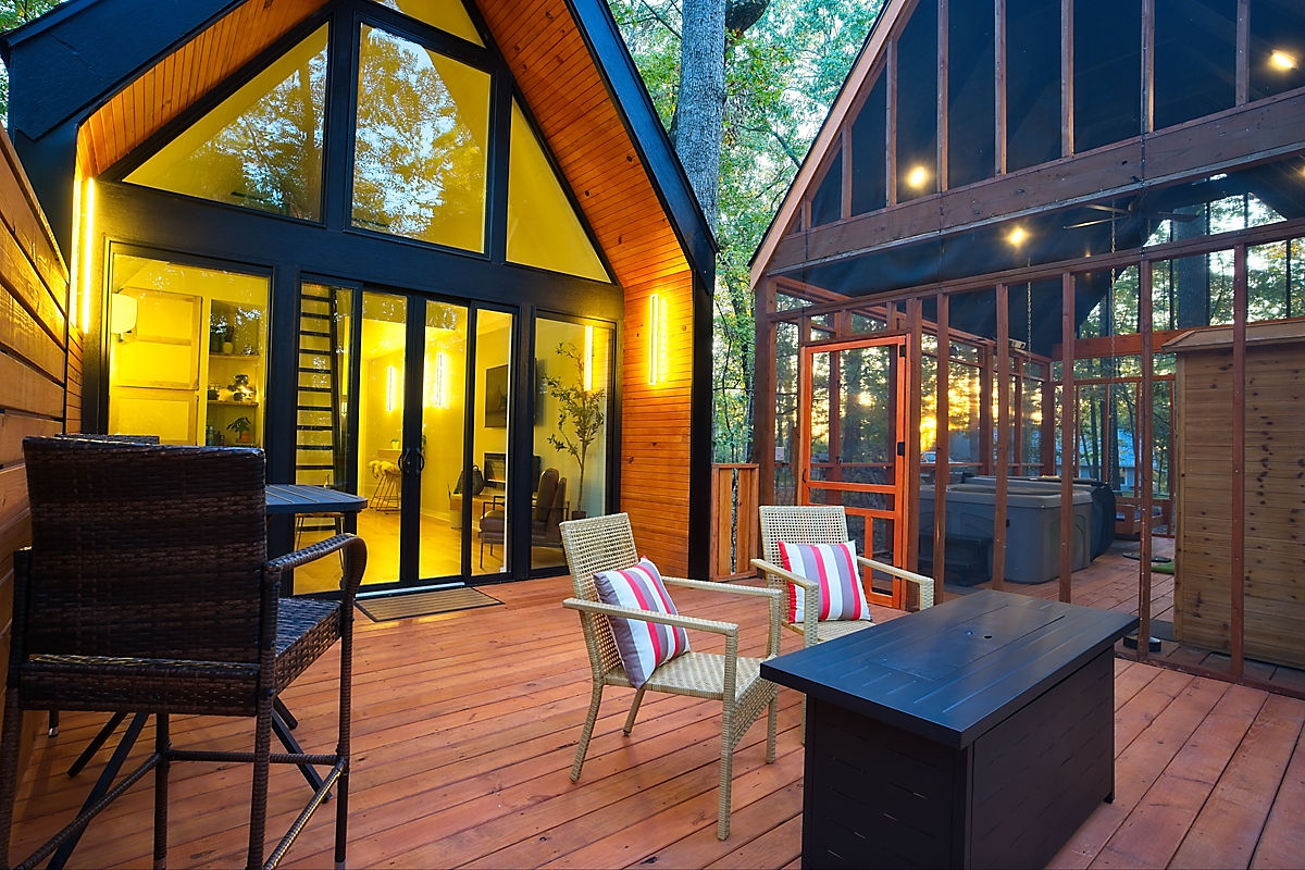 Ganz gleich, ob du ein Paar auf der Suche nach einem romantischen Kurzurlaub oder Familie und Freunde auf der Suche nach einem unterhaltsamen Erlebnis bist, dieses Haus hat alles! Die Unterkunft befindet sich in einer bewaldeten Unterteilung von East Fayetteville. Es ist etwa eine 30-minütige Fahrt zur UofA. Du wirst zwei Schlafzimmer und zwei Badezimmer vorfinden. Unten findest du ein gemütliches Wohnzimmer und einen Kamin, einen großen Küchentisch und ein Spielzimmer! Draußen auf der geschlossenen Veranda genießt du einen WHIRLPOOL, einen Filmprojektor und einen individuellen Feuerstellenbereich hinter dem Deck.