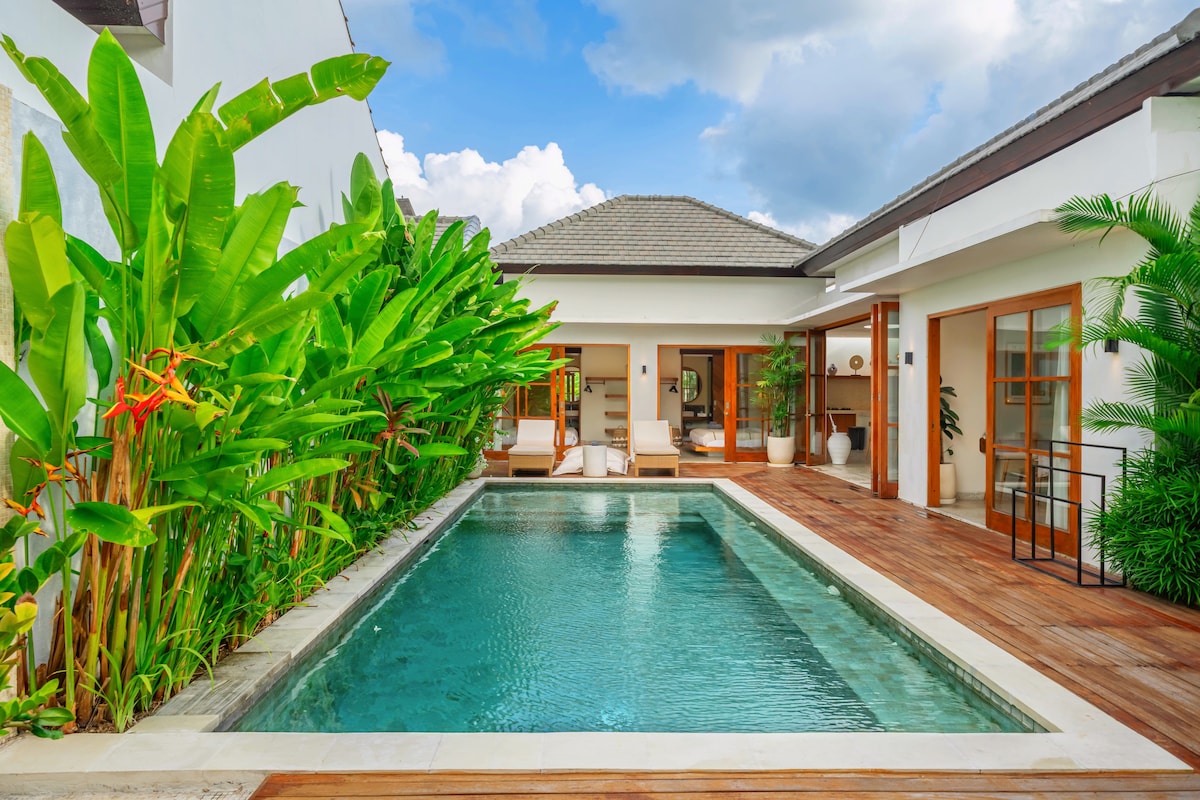 Entfliehe deiner privaten Oase im Herzen von Seminyak! Diese wunderschön gestaltete Villa mit 1 Schlafzimmer bietet die perfekte Mischung aus Komfort, Stil und Komfort. Nur 150 Meter vom Strand entfernt kannst du innerhalb weniger Minuten das Beste von Balis Sonne, Brandung und Sand genießen. Die Villa verfügt über ein geräumiges, klimatisiertes Schlafzimmer mit einem Kingsize-Bett, ein eigenes Bad und einen direkten Zugang zu Ihrem eigenen privaten Swimmingpool – perfekt zum Entspannen nach einem Tag voller Erkundungen.