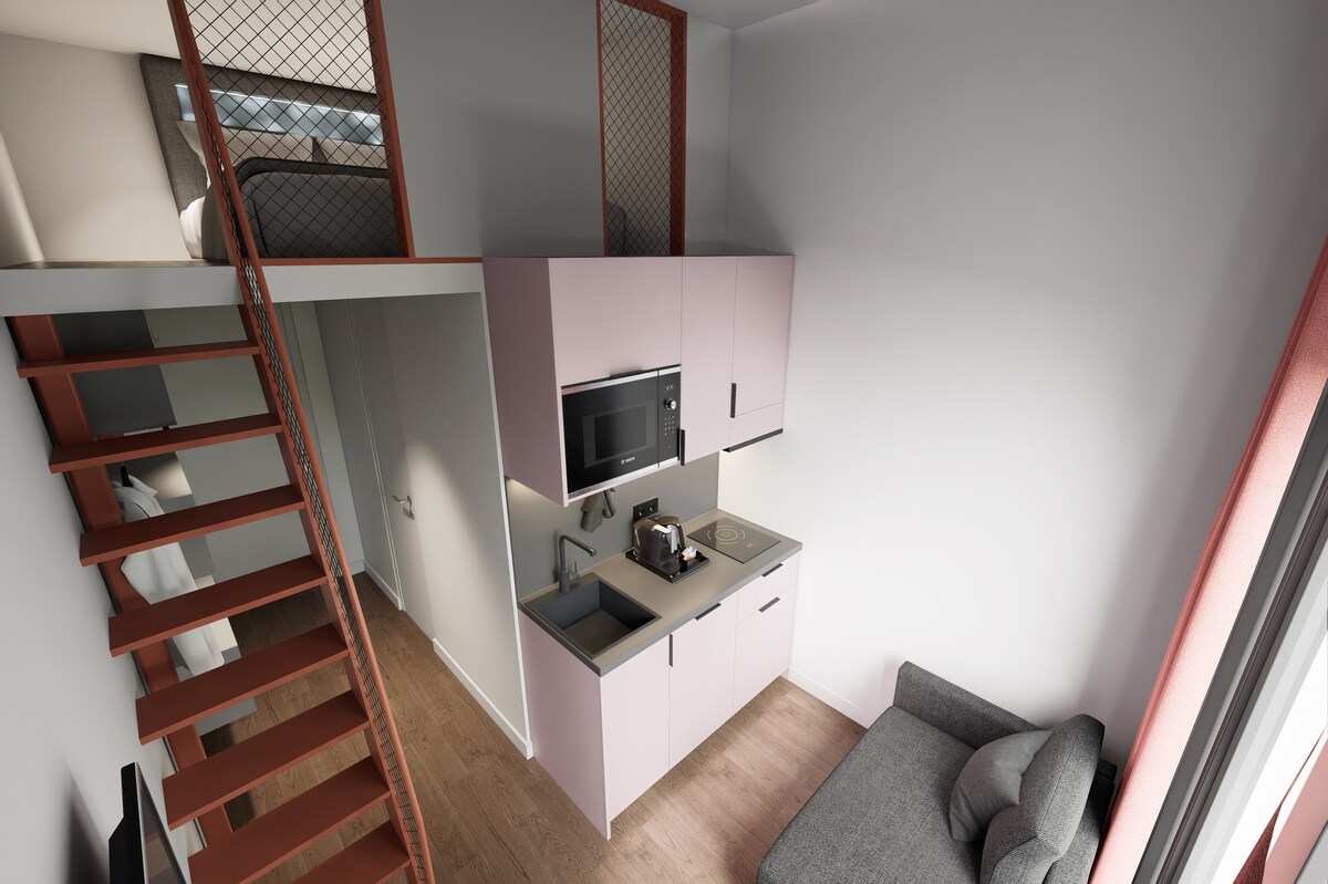 Fühl dich wie zu Hause in 22 m² elegant gestalteter Unterkunft mit beeindruckendem Blick über die Spree von deinem eigenen Balkon. Du hast ein bequemes 150 cm x 200 cm großes UK-Kingsize-Bett, einen Schreibtisch zum Arbeiten, ein modernes Badezimmer, eine Küchenzeile für müheloses Kochen und Zugang zu einem privaten Balkon mit Blick über die Fluss Spree. Hast du Wäsche? Die Gemeinschaftswäscherei steht dir nach Belieben zur Verfügung. Haftungsausschluss: Die Wohnung auf dem Bild ist möglicherweise nicht die, in der du wohnst.
