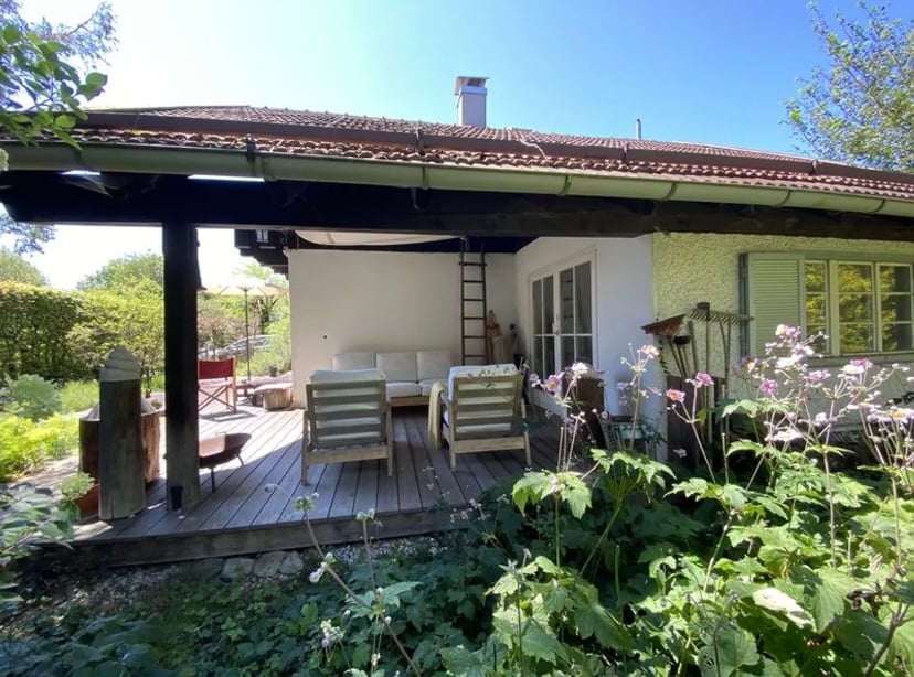 Lichtdurchflutetes Basecamp zwischen Alpen & Chiemsee Genießt bayerische Idylle in unserer ebenerdigen, hellen Unterkunft. Direkt vor der Tür warten Traumwege zum Radeln und Wandern durch das Naturschutzgebiet oder in die Berge. Ob sportlich ambitioniert, als Paar oder geschäftlich – die Top-Lage zwischen München und Salzburg bietet euch perfekte Bus- und Bahnverbindungen in beide Metropolen. Erlebt Natur pur und urbanen Komfort an einem Ort. Wir freuen uns auf eure Anfrage! Nicole & Ali