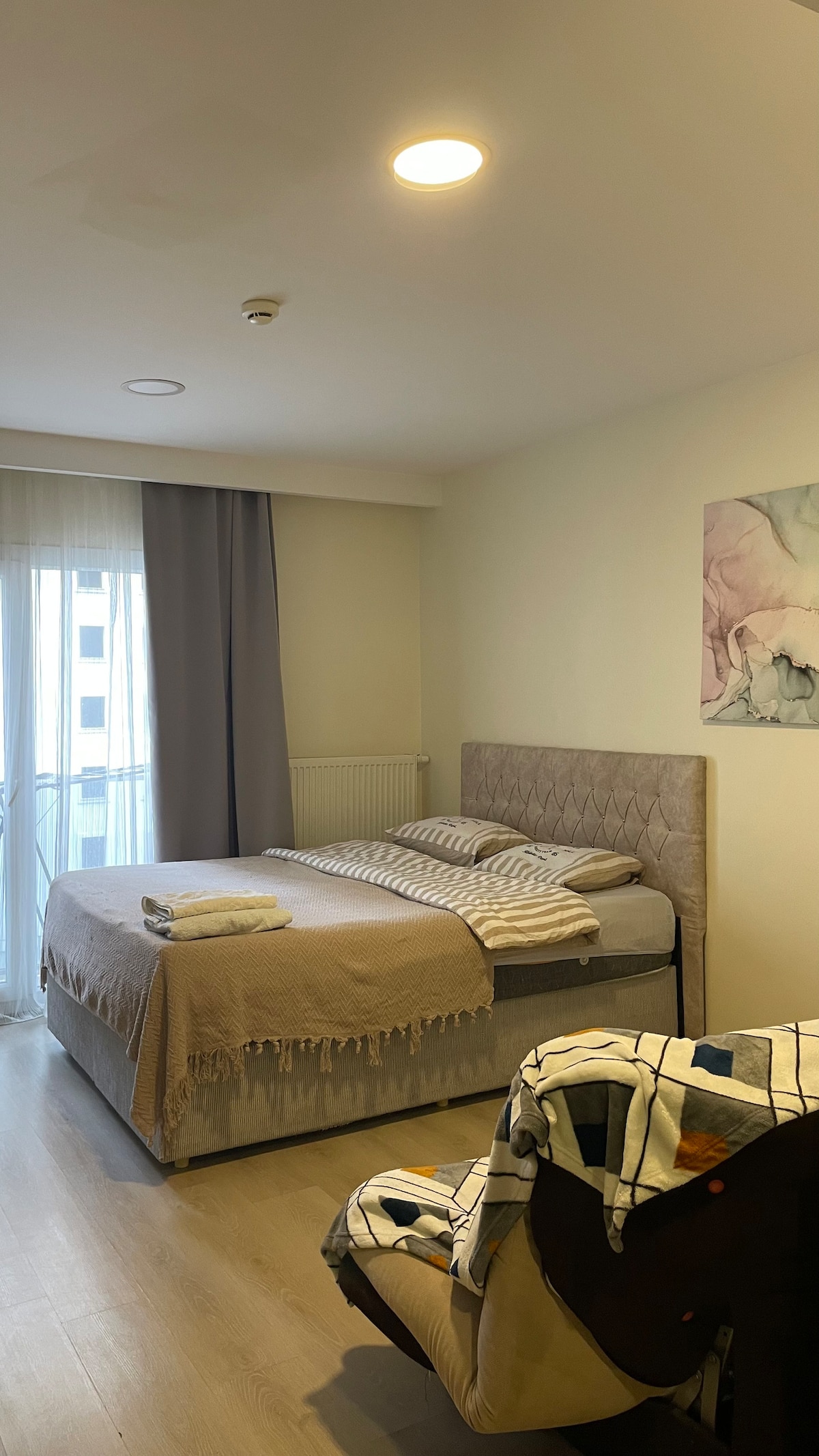 Unser komfortables und modern gestaltetes Apartment ist ein komfortabler Aufenthalt bei allen deinen Bedürfnissen vorbereitet auf. Du kannst deine Wohnung schnell mit dem Passwort betreten, das an dein Telefon gesendet wird. Die Lage unserer Wohnung ist nur 5 Gehminuten von der U-Bahn-Station Güzelyurt und den Supermärkten entfernt. Darüber hinaus ist sie 4 Haltestellen von der Tüyap Fair entfernt. Du kannst uns rund um die Uhr kontaktieren, wenn du Fragen hast
