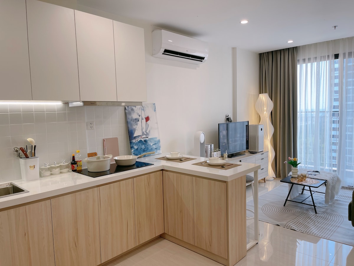+Apartment in Landmark2 building, next to Landmark81. +This is Officetel (Office+Hotel) Apartment allow to do Airbnb. +The bedroom have Luxury Memory-Foam mattress, King Size-1m8x2m, perfect & comfortable, good for back pain issue. +There is washing machine & dryer machine +Hygiene, cleanliness are my top priority. Bedclothes and towels are always renewed upon arrival +There is free cleaning service for long stay
