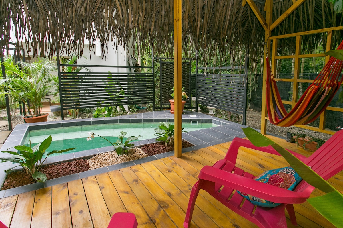 ❤️ Piscina privada ❤️ Cocina pequeña ( equipada ) ❤️ Aire Acondicionado ❤️ Parqueo privado. ❤️ Baño privado (ducha con agua caliente & bidé) (amenities) ❤️ Terraza (con piscina privada ) ❤️ Área de fumado ❤️ Sala de estar ( Tv ) (Netflix, Disney & Amazon ) ❤️ Cama Queen situado en un desván con mantas de algodón ( se accede por medio de escaleras ) observar las fotos . ❤️ Desayuno ( $10 extra por persona )