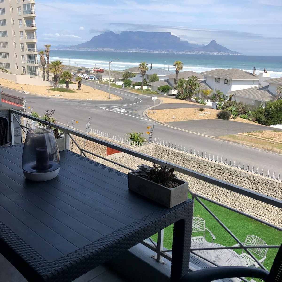 The apartment is on the 2nd floor (top) of the building, situated within a secure estate just minutes from the beach. From the enclosed balcony, you have awesome views of the ocean and Table Mountain. The space is generous, with lots of light and contemporary style furnishings. The unit is ideal for a couple, but can accommodate another person on the sofa/sleeper couch. We are excited to host you and are sure you will enjoy every minute!