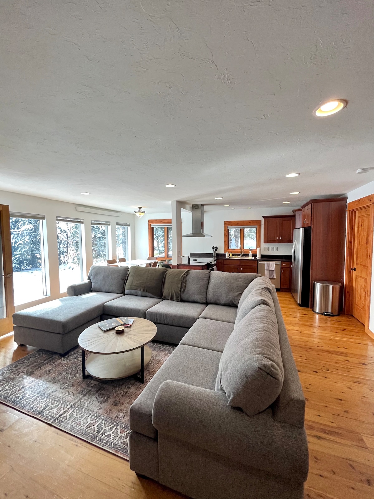 A contemporary mountain home located in Big Sky, a few minutes walk from Town Center: Well stocked with kitchen essentials for all your cooking needs. Within walking distance of many local activities - hiking, biking, yoga, restaurants, grocery stores, summer farmers’ market, cinema, golf course, shuttle bus to Big Sky Resort, winter hockey rink, summer ‘Music In The Mountains’ and the famous PBR (Pro Bull Riders Rodeo). During ski season, it is a 10 minute drive to Big Sky resort.