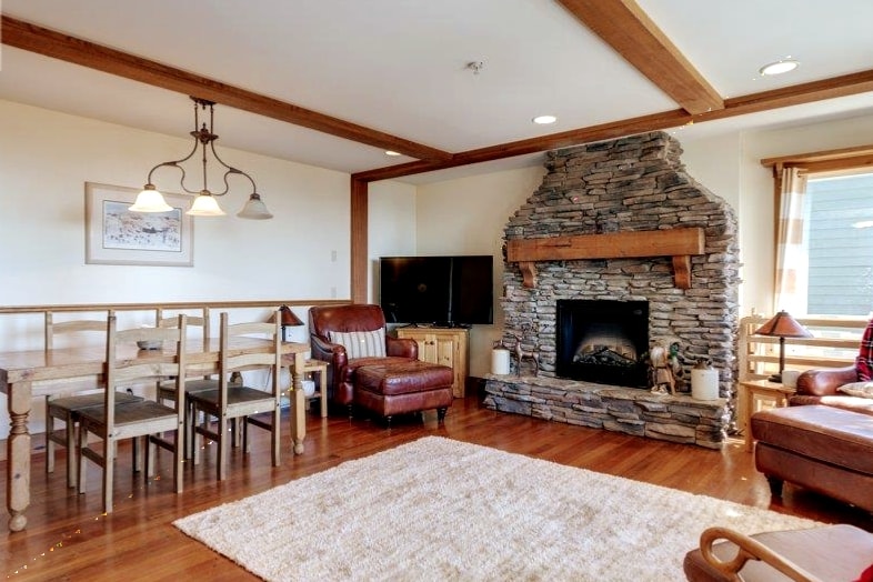 Erlebe den ultimativen Bergurlaub in unserer Big White Eigentumswohnung! Genieße den direkten Zugang zur Skipiste direkt vor deiner Haustür, gehe auf die Piste und entspanne dich dann stilvoll. Mach es dir nach einem Tag voller Abenteuer am Gaskamin gemütlich, sieh dir Shows auf dem Smart-TV an oder spiele Brettspiele. Koche Mahlzeiten in der voll ausgestatteten Küche und entspanne dich im ruhigen Schlafzimmer mit teilweisem Blick auf die Piste. Genieße zwei gemeinsam genutzte Whirlpools, eine private Waschmaschine/einen Trockner und einfachen Zugang zum Big White Village. Buche jetzt deinen epischen Kurzurlaub!