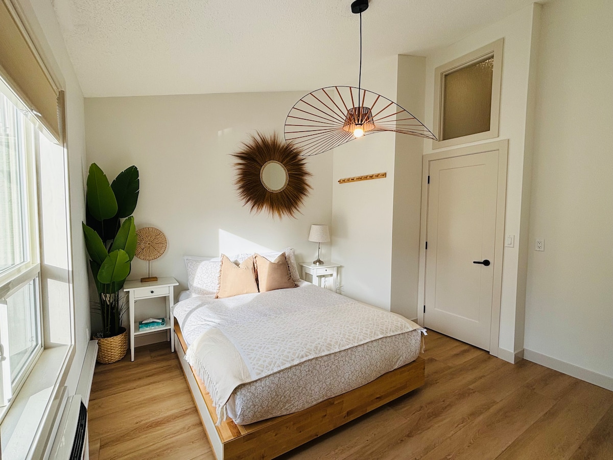 Entfliehe in dieses neu renovierte, zweistöckige Stadthaus mit Bergblick vom Balkon des Hauptschlafzimmers. Dieser gemütliche Rückzugsort ist perfekt für Familien geeignet. Er bietet bequem Platz für sechs Personen und ist durchdacht für Entspannung und Komfort gestaltet. Das Hotel liegt nur 1 km vom Tor des Banff-Nationalparks, 5 Minuten von Canmore und 13 Minuten von der Stadt Banff entfernt und ist der ideale Ausgangspunkt für deine Bergabenteuer.