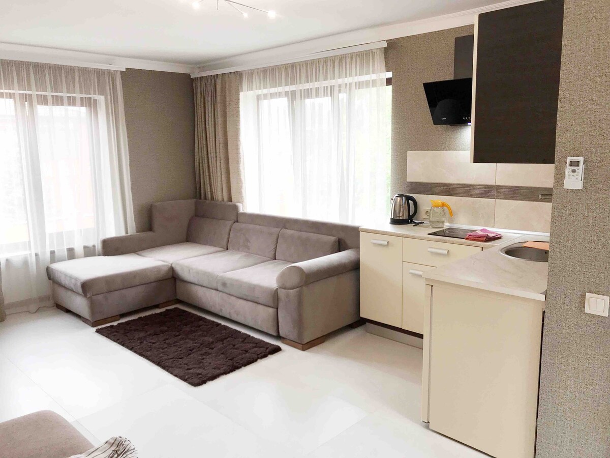 Die Unterkunft ist großartig: Du bist umgeben von Stil. Ein 30 m² großes Studio-Apartment befindet sich in einem neuen Gebäude im 4. Stock, 4-stöckiges Gebäude (kein Aufzug), bitte berücksichtigen Sie dies bei der Buchung Die Wohnung ist ein wenig vom Stadtleben entfernt. Bitte beachten Sie die Lage des Hauses auf der Karte. Ideal für Gäste mit eigenem Auto, oder wenn Gäste öffentliche Verkehrsmittel nutzen (in der Nähe des Hauses gibt es eine Trolleybus-Haltestelle, es gibt einen Minibus (jede Stunde), es dauert 20 Minuten zum Strand "Otrada", neben dem Strand "Lanzheron