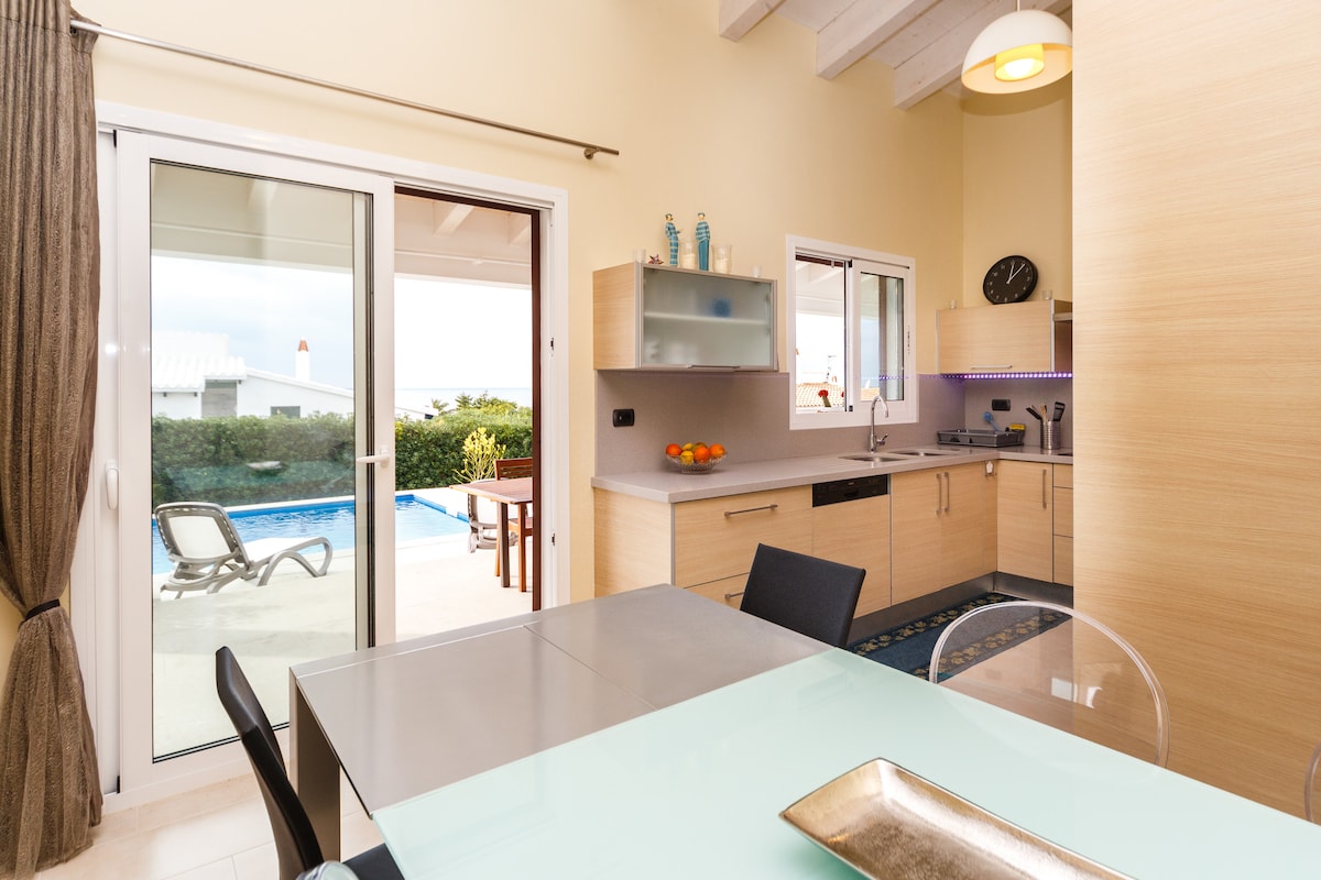 Villa mit Meerblick, privatem Pool und Strand in der Nähe