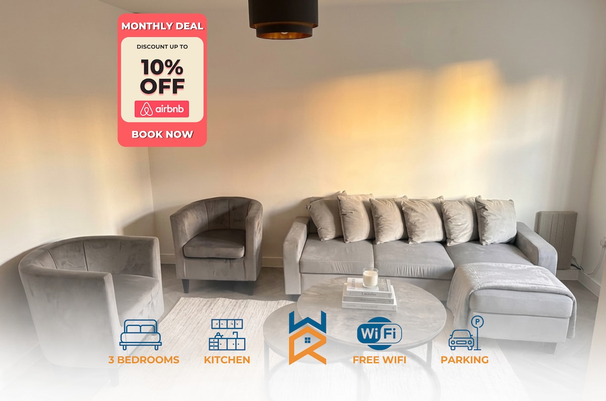 ★Townhouse Stays Short-Term Rentals & Serviced Accommodation Birmingham★ 🏠 Comfortable 4-Bed, 2-bathroom contractor-friendly home in Birmingham. Ideal for families, work teams and insurance relocations. 🚗Easy access to M42, M6, M40 ✈️Birmingham International Airport is 10 mins by taxi/car 🎡4.6 miles to NEC / Resorts World Complex 👷🏾♂️ HS2, JLR, Amazon & Contractor Friendly 🚉Close to Marston Green Railway Station 🛍️6.0 miles to Solihull Town Centre 🏏 🏉⛳️ Edgbaston, The Belfry