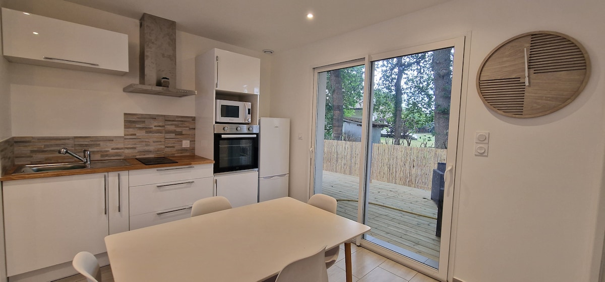 Kommen Sie und stellen Sie Ihre Koffer in unserem voll ausgestatteten Familienhaus ab. Mit 6 Schlafplätzen, einer Master-Suite mit Bad, einem zweiten Bad und modernen Annehmlichkeiten ist alles für Ihren Komfort gedacht. Die Terrasse und der Garten mit Bäumen sind perfekt für Mahlzeiten im Freien rund um die Plancha. Das Hotel liegt auf dem 4-Sterne-Campingplatz der Domaine de la Forge, genießen Sie die Aktivitäten und Einrichtungen (beheiztes Schwimmbad, Rutsche, Fitnessraum...) in der Nähe der Wunder des Bassin d 'Arcachon.