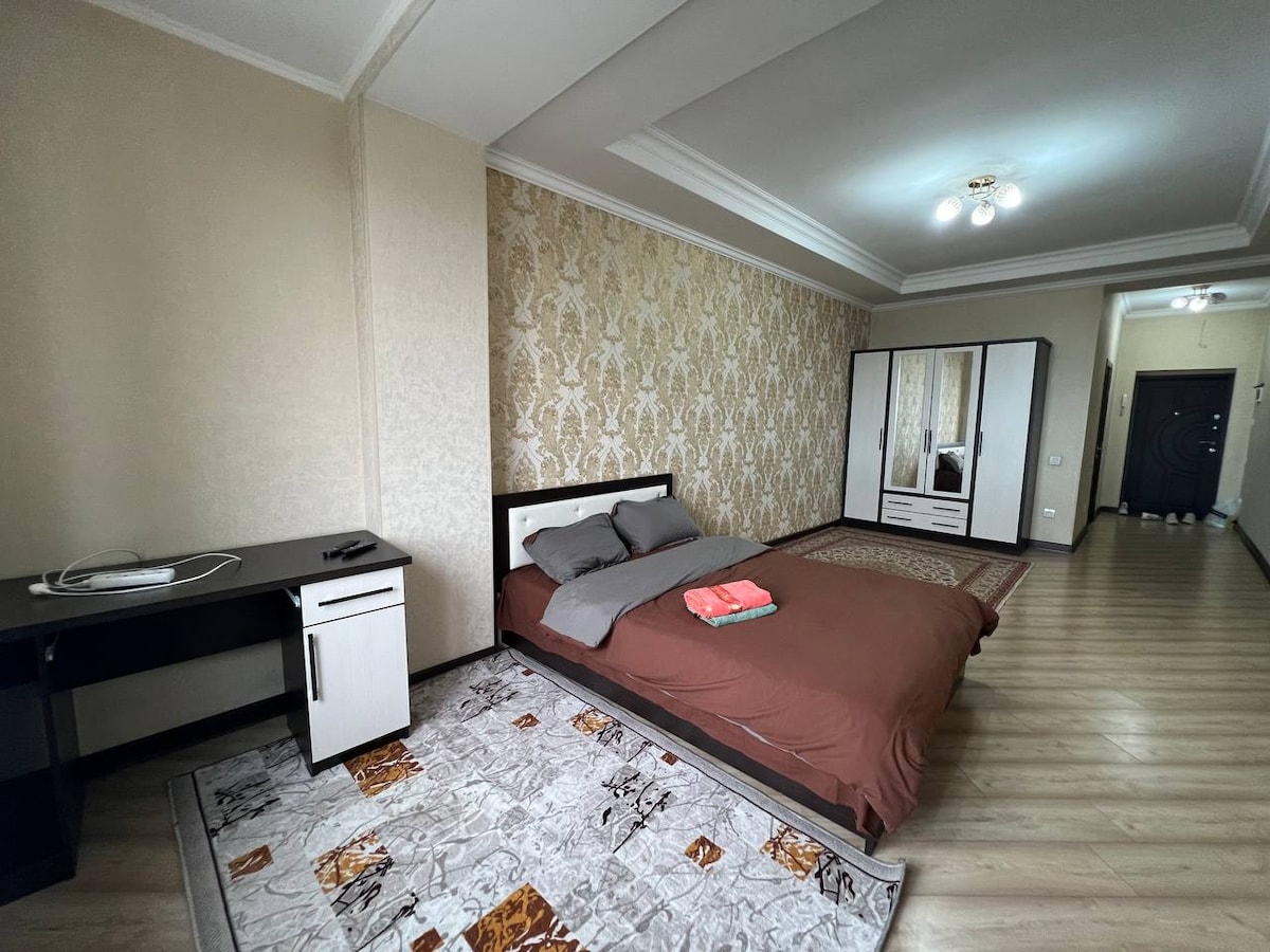 Wohnungen im Zentrum der Stadt in einem neuen Komplex mit Sicherheit ( 24/7). Gute Aussicht auf die Stadt. Die Wohnung verfügt über moderne Möbel, Waschmaschine, Geschirr. Gutes Internet und TV mit englischen Kanälen. In der Nähe befinden sich viele Geschäfte und Cafés. Großes nationales Restaurant Navat. Das größte Einkaufszentrum ist der Bishkek Park In der Nähe des Panfilov-Parks, des Ala-Too-Platzes und des Erkindik-Parks. Unser Fahrer kann dich am Flughafen treffen.