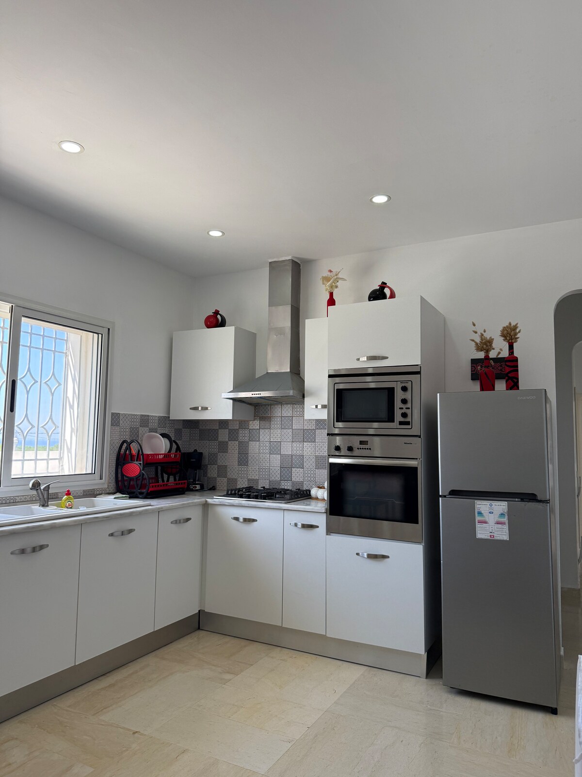 Entdecken Sie Dar Mamie, bestehend aus 4 Schlafzimmern und Panoramablick auf das Meer. Ideal für 8 Personen, hat es einen großen Garten, eine Terrasse, um den Sonnenuntergang zu bewundern, und eine voll ausgestattete Küche. Animal freundlich, sie begrüßt auch Ihre Vierbeiner. Nur einen Katzensprung von den Stränden und den Höhlen von Bizerte entfernt, genießen Sie eine ruhige Umgebung für einen Urlaub mit der Familie oder mit Freunden im Winter wie im Sommer! Checkin 14 Uhr Checkout mittags