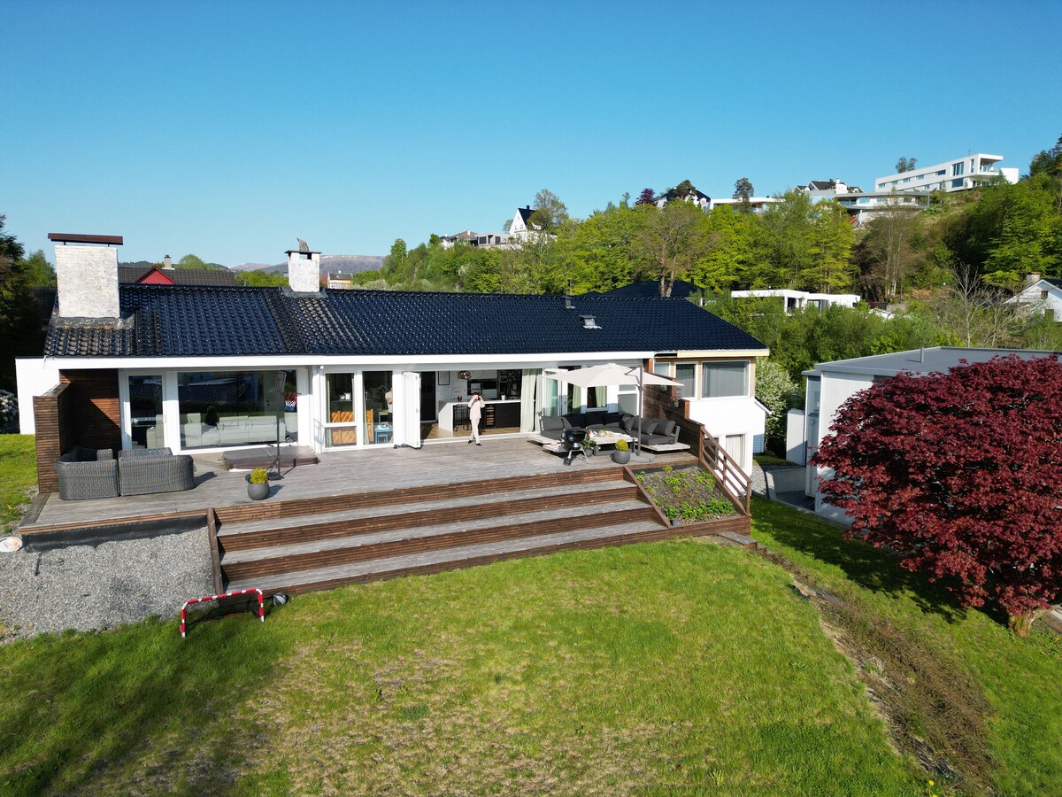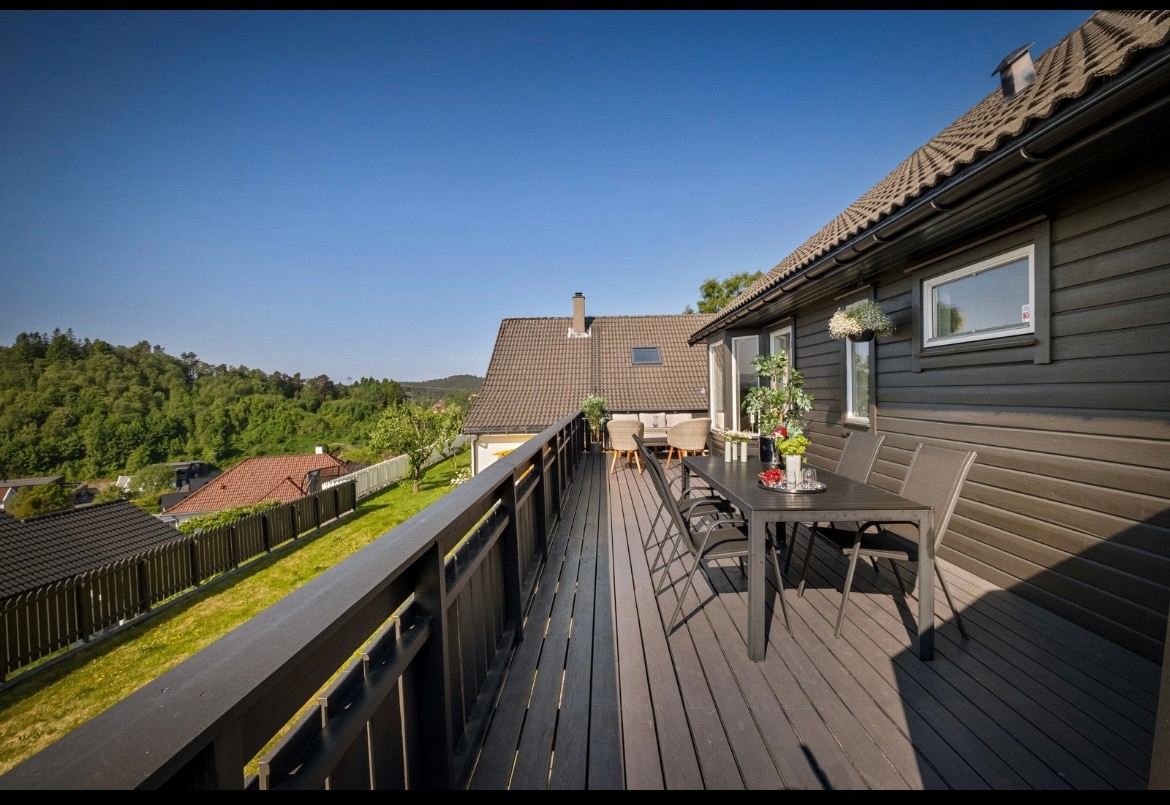 Willkommen in unserem Zuhause mit herrlichem Ausblick! Erleben Sie, wie das Innere und die umliegende Natur eins werden, mit den großen Fenstern, den weit geöffneten Türen und der beruhigenden Stille des Waldes und dem Klang der zwitschernden Vögel. Genieße die schwebende Terrasse und den Panoramablick in einem der begehrtesten Viertel Bergens. Umgeben von den Wäldern, lassen Sie Ihre Kinder sicher herumlaufen, um den Spielplatz zu genießen, und machen Sie einen Spaziergang oder laufen Sie in den bezaubernden Wäldern der Stabkirche. Perfekt für Familien und Freunde!