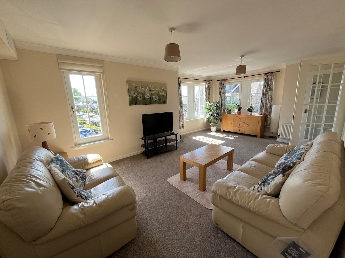 Immaculate new build apartment (2019) which has been newly furnished and decorated to a high standard in January 2021. The apartment sits beneath Stirling Castle (15 minute walk), with a view toward the National William Wallace Monument (10 minute drive) and the stunning Ochil Hills. There is a large supermarket very close to the apartment (5 minute walk). The apartment is perfect for guests looking to visit Stirling and further afield for work or leisure. We look forward to your arrival ;-))