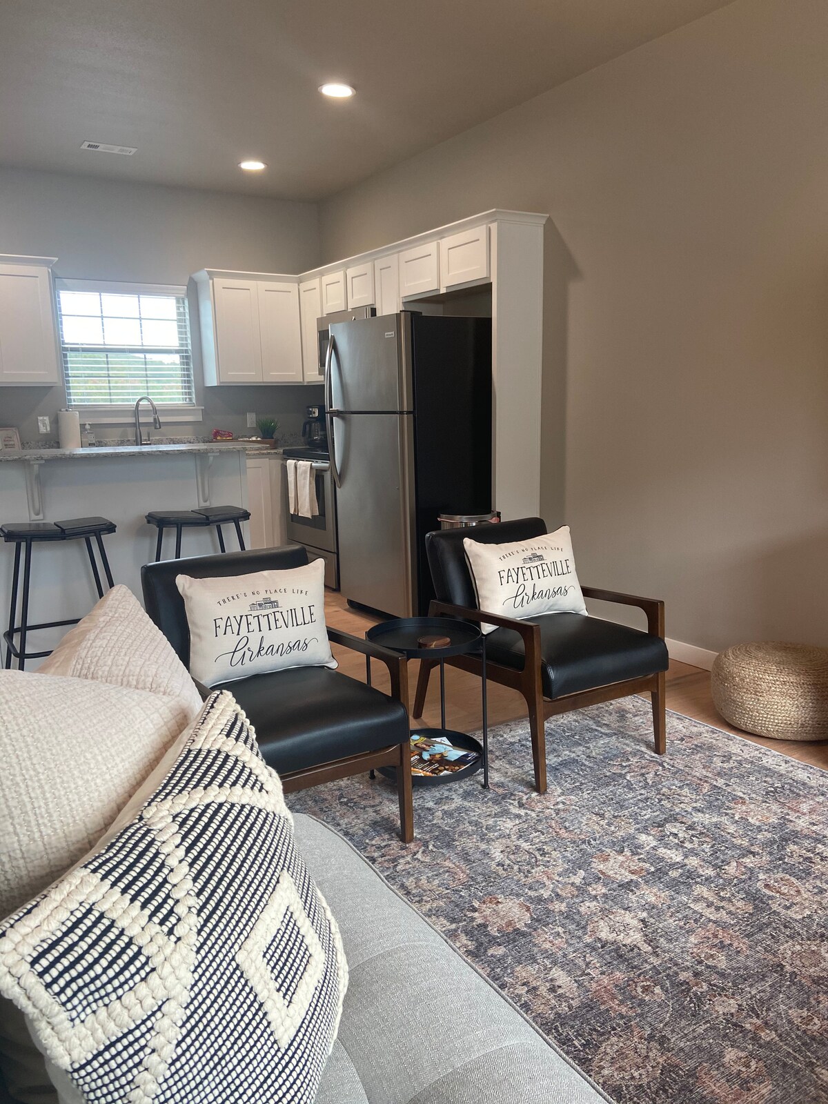 Dieses neu renovierte Reihenhaus mit 2 Betten und 2,5 Bädern kann dein Zuhause sein. Weniger als 2 Meilen vom U of A Campus entfernt, ist es perfekt für ein Spielwochenende oder nur ein Wochenende mit der Erkundung von Fayetteville und allem, was NWA zu bieten hat. Das Hotel liegt auf der 49, egal wohin du fährst, hast du einfachen Zugang. Nur 30 Minuten von Crystal Bridges oder Devil's Den entfernt, sind die Möglichkeiten grenzenlos.