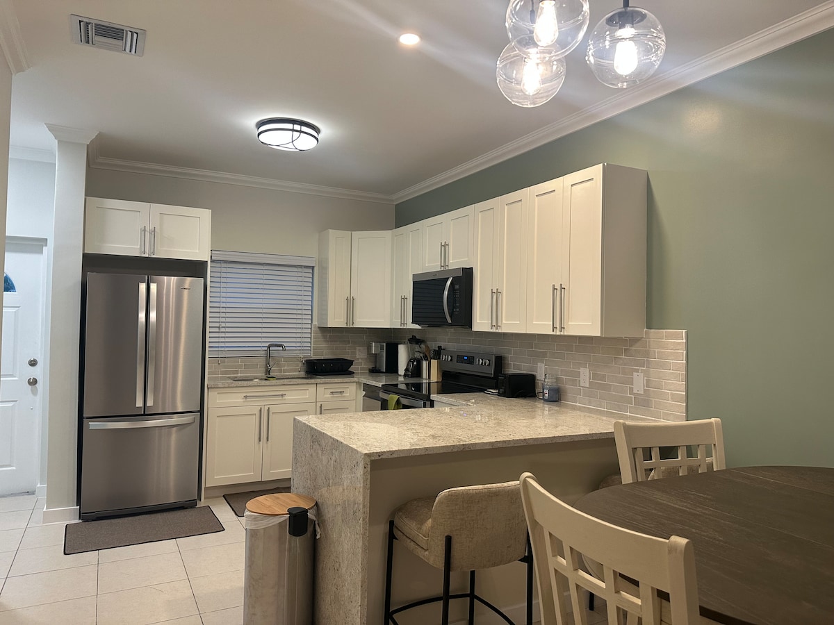 Eine gemütliche 1-Zimmer-Wohnung. Dieser Neubau liegt nur 10 Gehminuten vom Beach Bay entfernt, einem ruhigen und einzigartigen Cayman Beach. Das Schlafzimmer verfügt über einen 65-Zoll-Smart-TV, ein Dolby-Atmos-Soundsystem und einen großen Kleiderschrank. Es gibt einen komfortablen Arbeitsbereich. Das Badezimmer verfügt über eine 4-Jet-Dusche und eine ferngesteuerte japanische Toilette. Die Küche verfügt über einen großen Kühlschrank im amerikanischen Stil, einen Bullet, eine Kaffeemaschine sowie einen großen Backofen und eine Mikrowelle. Das Haus verfügt über einen eigenen Generator. Wenn also der Strom ausfällt, sind unsere Gäste sicher.