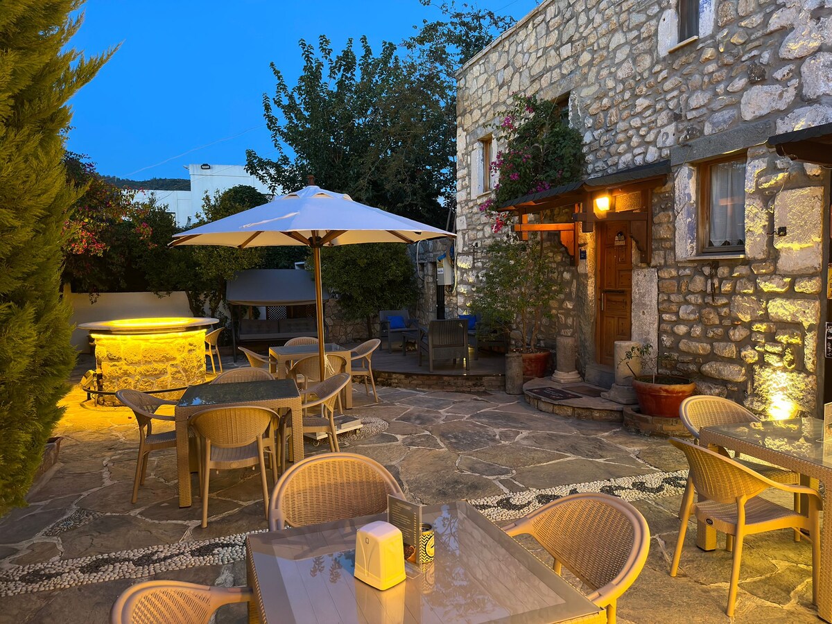 Ha La Bodrum in Bodrum Marina, versteckt in einem ruhigen Zitronengarten in einem 500 Jahre alten Steinhaus. Du bist nur wenige Schritte vom Schloss Bodrum, dem Mausoleum, Cafés am Meer, dem Nachtleben und der Fähre nach Kos entfernt. Unsere Gartenbar serviert Cocktails an Sommernächten. Gäste lieben die natürlich coolen Steinzimmer. Strände wie Bardakçı und Bitez sind in der Nähe. Perfekt zum Entspannen und doch in der Nähe von allem. Bis bald! *Frühstück 25 Euro pro Person und ist nicht enthalten.