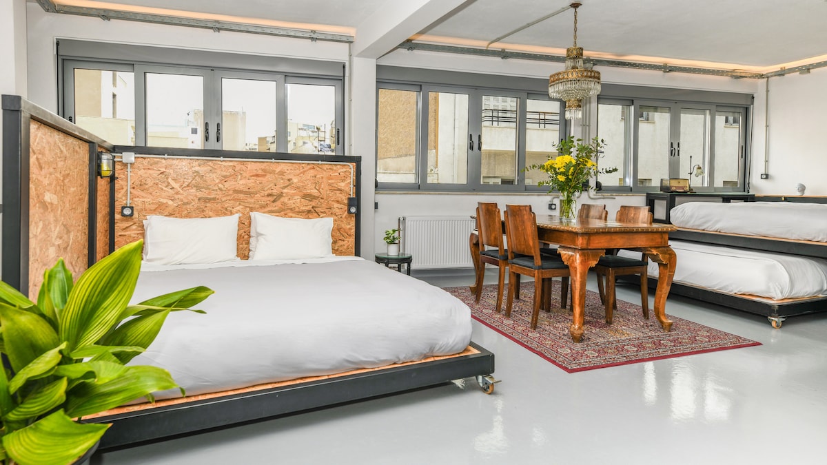 Athens Artistic Urban Habitat – Stadtzentrum /100 m² ist ein großes künstlerisches Studio im Zentrum von Athen. 10 Minuten vom Syntagma-Platz entfernt, wenn du den nächsten Bahnhof, Kato Patissia, benutzt – nur 400 m vom Habitat entfernt. Das Archäologische Museum liegt 2,9 km, die Akropolis 4,8 km und Monastiraki mit seinem berühmten Flohmarkt und den zahlreichen Restaurants und gemütlichen Bars ist nur 4 Haltestellen entfernt. Reise mit Eleganz und erlebe das Unerwartete!!!