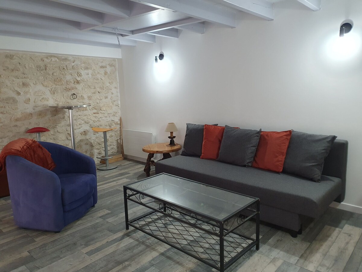 Charmant studio indépendant avec cheminée, entièrement rénové, donnant sur une belle cour commune. Situé entre les chemins de randonnée de la forêt de Fontainebleau et le Loing. Un ménage de qualité est prévu par nos propres soins ( compris dans le prix). Pour information nous avons remplacé le canapé convertible (couchage quotidien) afin d'offrir plus de confort aux visiteurs. Location de vélos (dont électriques) possible chez notre voisin (instructions sur la dernière photo de l'annonce).