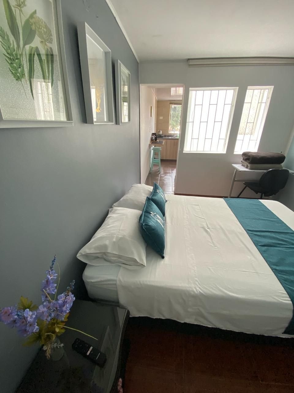 Zimmer in einem Boutique-Hotel im Viertel Palermo von Teusaquillo, in einer Wohngegend, nur wenige Gehminuten von der Palermo-Klinik, dem Stadtzentrum, dem El Campin-Stadion, der Movistar Arena und dem Flughafen entfernt. Das Zimmer verfügt über ein eigenes Bad, einen Schreibtisch, einen 32-Zoll-Smart-TV und elektronische Türschlösser. Abendlicher Sicherheitsdienst.