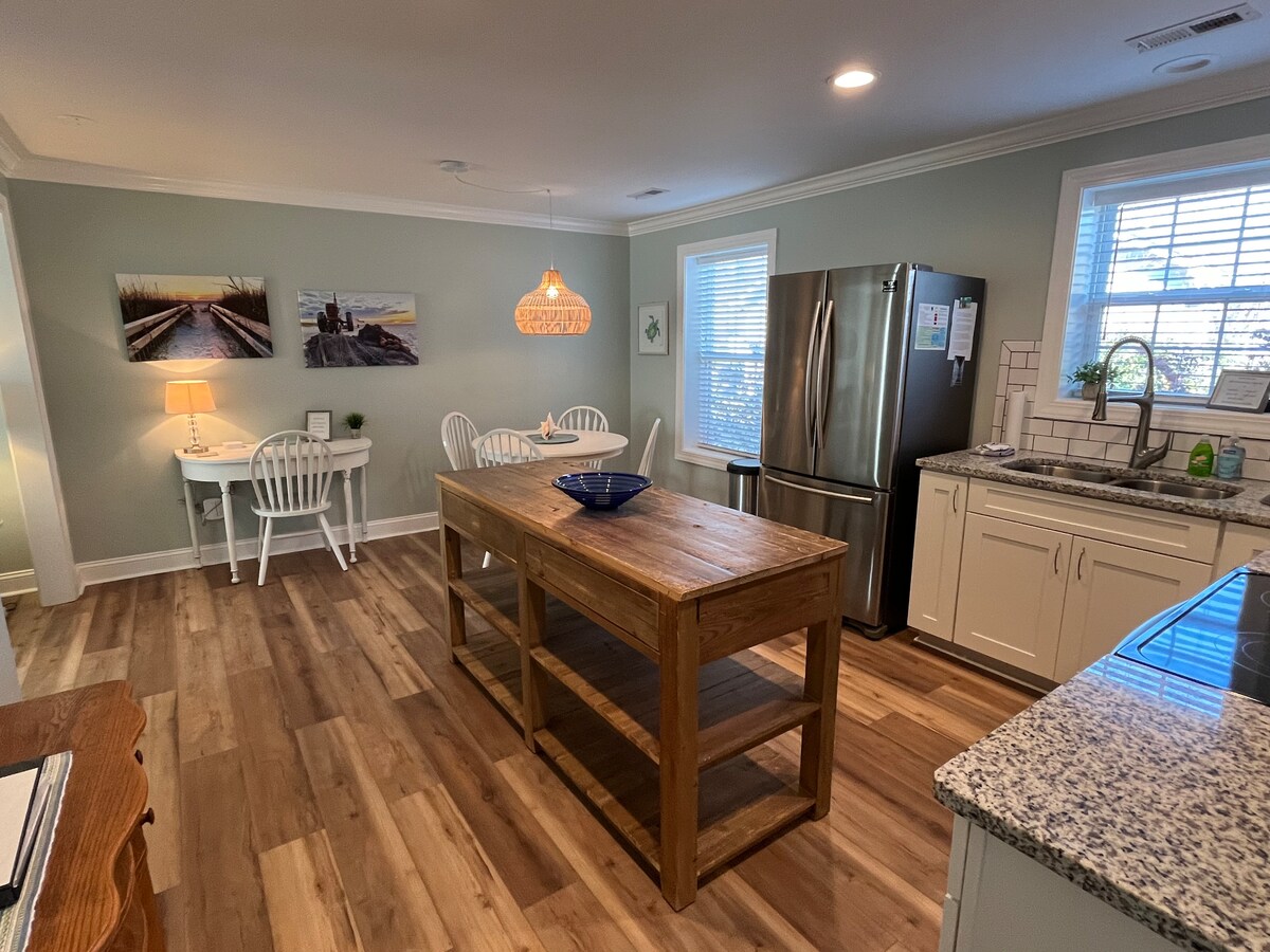EARLY BIRD DISCOUNTS -BOOK NOW! Live like the locals in this bright, beautiful, clean 1 bedroom suite in “downtown” EI! 10 min walk to beach, 3 min walk to "little pier" on the sound. FREE gated beach parking lot just east of Bogue Pier. 2 kayaks, 2 bikes/beach chairs. Luxury shower, gorgeous full kitchen. Outdoor shower, patio, charcoal grill. Linens provided. Off street pkg. Close to everything! You must be 21 or older to book. Anyone 21 or younger must be accompanied by parent/guardian
