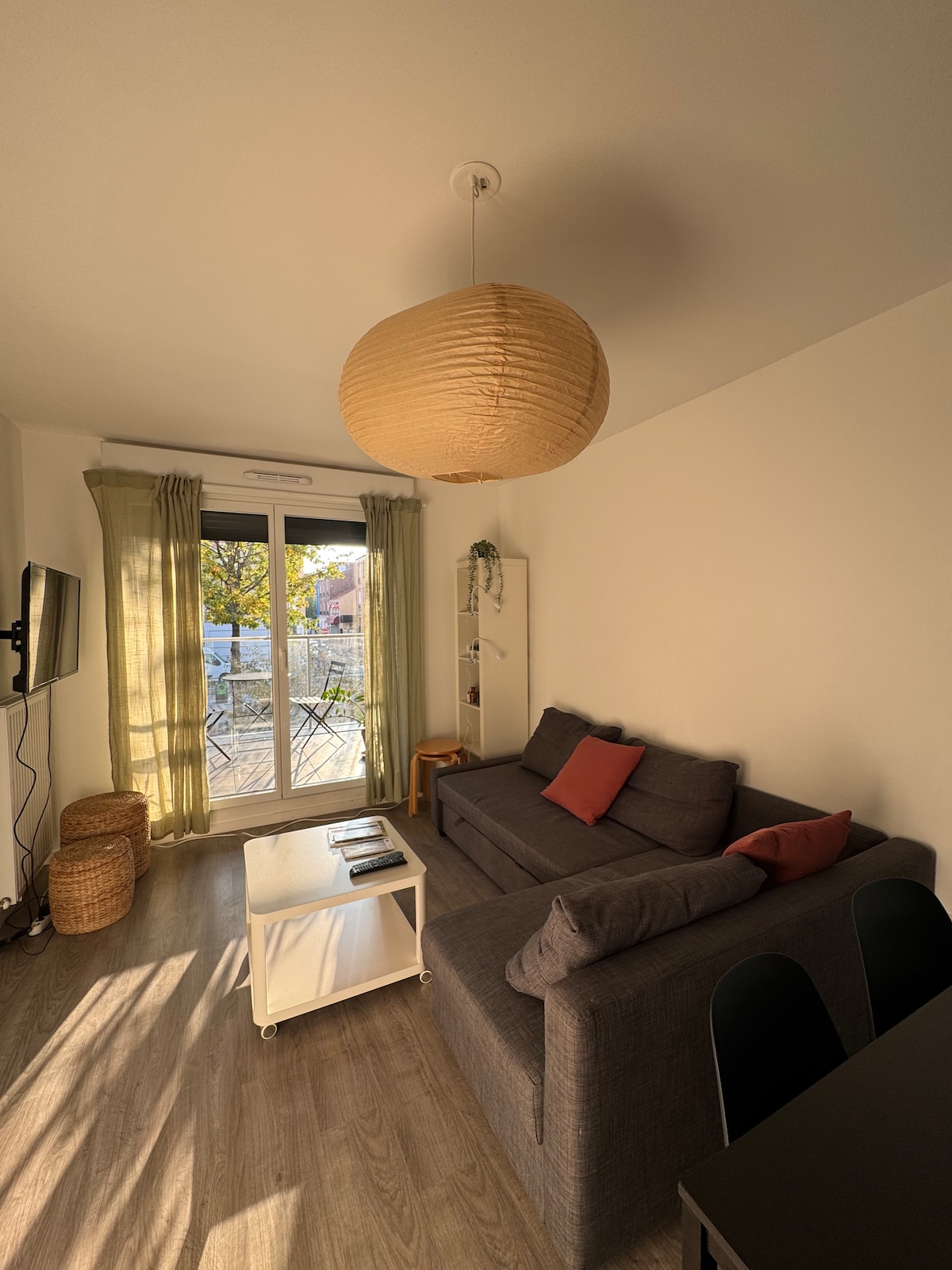 Studio de standing, 27 m2, 3ème étage avec ascenseur. Très fonctionnel & très lumineux. Quartier calme, à 5 minutes à pieds, commerce et centre ville. Desservi par nombreux transports en commun (bus, Tram, train). Idéal pour 3 adultes ou famille 2 adultes & 1 enfant. Entrée placards et penderie, SDB avec machine à laver, séjour avec canapé lit très confortable pour 2 personnes et fauteuil convertible (1 couchage 107 x 193). Cuisine moderne entièrement équipée. Smart TV Ultra HD, wifi, Netflix.