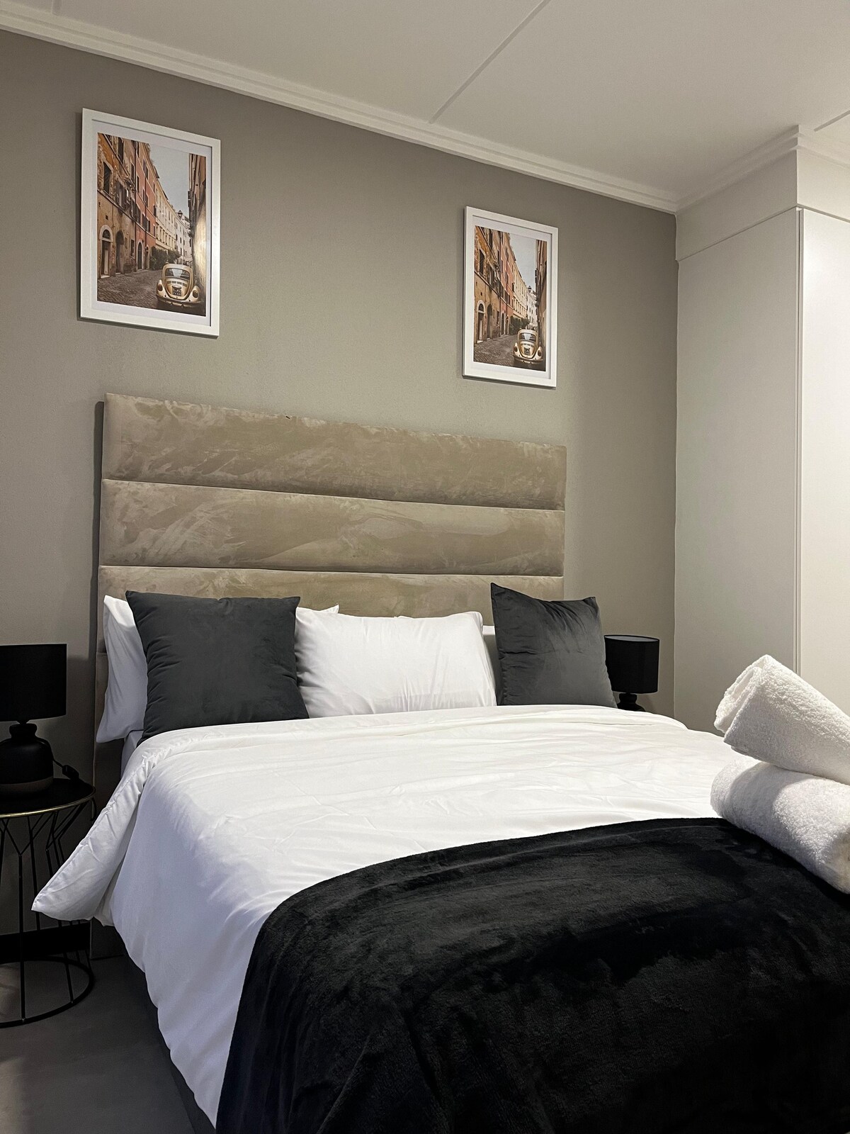 Wir heißen dich herzlich willkommen, um dich in unserem ruhigen und luxuriösen Raum in einem ruhigen Teil von Fourways zu entspannen. Die Wohnung ist einzigartig und geschmackvoll mit Annehmlichkeiten gestaltet, die Stil und Komfort ausstrahlen. Gönne dir diese atemberaubende Wohnung mit einem Queensize-Bett, einer voll ausgestatteten Küche und einem modernen Badezimmer. Entspanne dich auf der Terrasse oder auf der Couch und genieße einen Fernseher mit Netflix und Youtube. Die Wohnung verfügt über eine Notstromaggregat, die den Fernseher und das WLAN versorgt. Buche noch heute einen Aufenthalt und gönne dir Luxus.