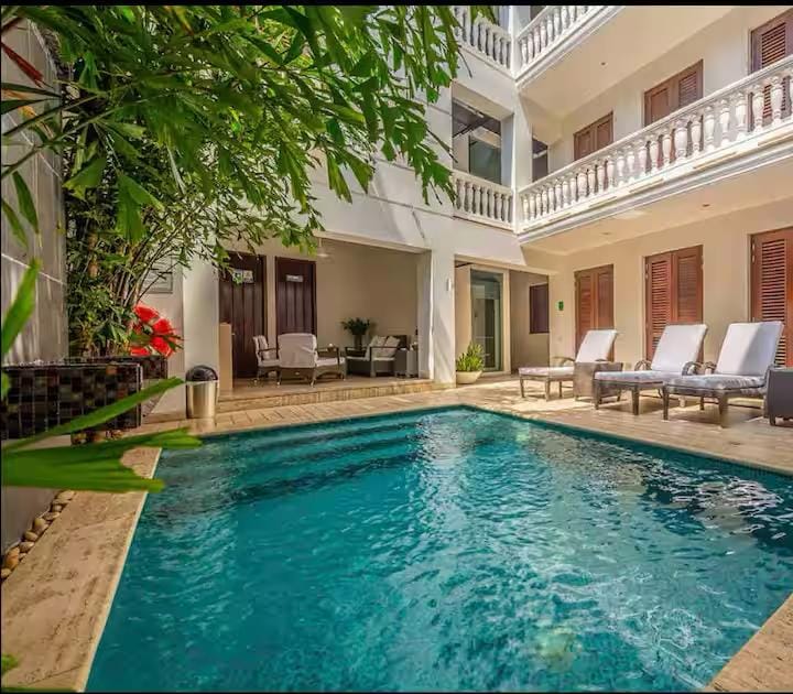 🏆 AD Design Icons Awards Finalist 2022 - Featured in Axxis 2022 Yearbook as one of Colombia's Best Homes Casa Azzurra Getsemaní: designer house of 5,920 sq ft for 10 guests in the vibrant Getsemaní neighborhood. Ideal for large groups, family reunions, and special celebrations. Includes: complimentary airport transfers (round trip), daily gourmet breakfast, private concierge 24/7, and daily housekeeping service. Customize your stay with catering from our private chef and exclusive experiences.