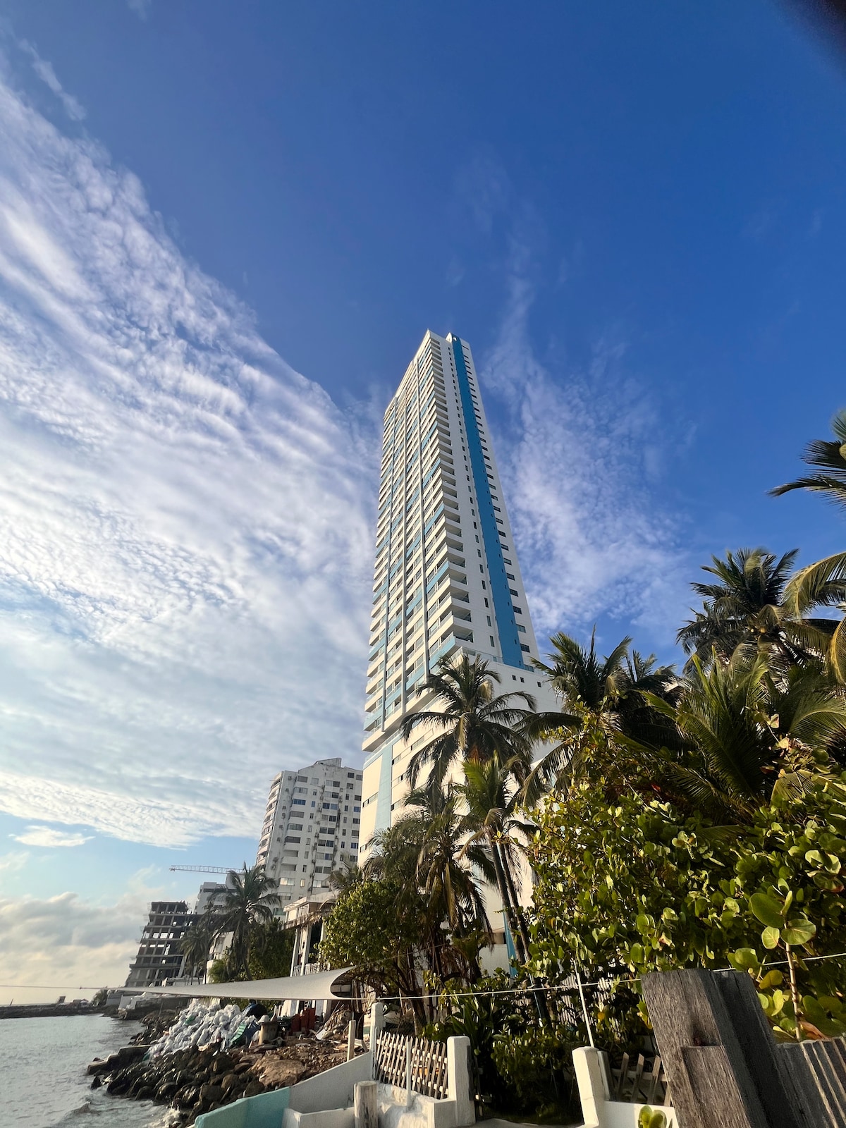 Atemberaubende Aussicht + perfekte Lage Entspanne dich in luxuriöser Pracht in diesem geschmackvoll eingerichteten Penthouse mit 2 Schlafzimmern und 2 Badezimmern direkt am Strand im 36. Stock eines der neuesten und prestigeträchtigsten Gebäude von Cartagena: Palmetto Beach. Weitläufige, atemberaubende Aussicht auf das Meer und die Bucht von Bocagrande. Möbliert nach Luxushotel-Standards mit großem TV in allen Schlafzimmern. Zu den Annehmlichkeiten im Gebäude gehören ein voll ausgestatteter Fitnessraum und ein Pool auf der obersten Etage.