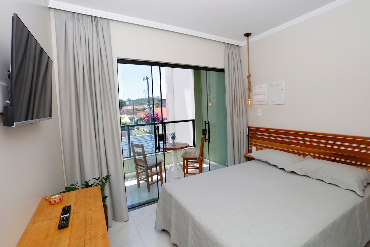 Spezielle Suite für 2 Personen. Ganz in der Nähe der Strände von Bombinhas, Lagoinha, Sepultura und 4 Inseln. Es gibt Klimaanlage, Smart-Fernseher, Kabel-TV, Highspeed-Internetzugang, eine ausgestattete Küche, einen Balkon mit Hängematte und einen privaten Grillplatz. Geschlossene und überdachte Parkplätze.