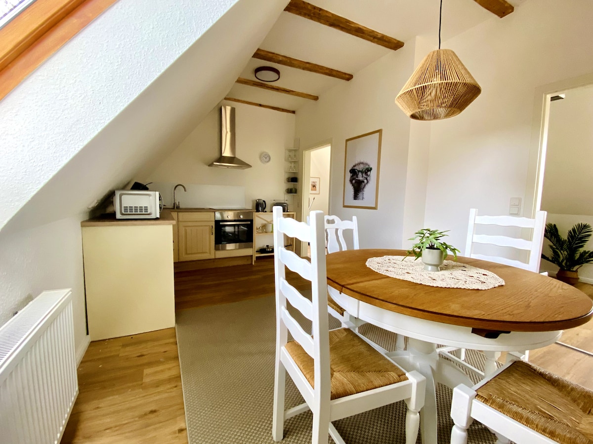 Die kleine Wohnung ist auf einem alten Bauernhof, der zu Wohnungen umgebaut wurde. Der Charme der Wohnung mit den alten Balken lädt zum Entspannen und Entschleunigen ein. Ein großes dazugehöriges Grundstück kann zum Picknick oder Sonnenbaden genutzt werden. Auf dem Hof gibt es genügend Parkmöglichkeiten. Die Wohnung liegt in Düshorn, einem kleinen Dorf in der Lüneburger Heide. Es gibt einen Bäcker und Dorfladen, im 3km entfernten Walsrode gibt es zahlreiche Einkaufsmöglichkeiten.