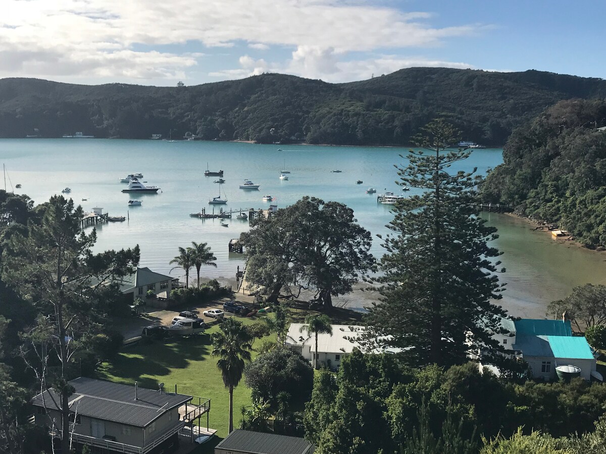 Wir würden gerne unser Inselhaus mit dir teilen, wenn du auf der Suche nach ein bisschen Abenteuer oder Einsamkeit in einer wunderschönen Umgebung im Busch abseits des neuseeländischen Festlandes bist. Die Aussicht auf die Schoolhouse Bay von unserer Terrasse ist atemberaubend und die Rufe der einheimischen Vögel sind Musik für die Ohren. Unser Haus befindet sich in einer sehr privaten Umgebung im Busch, aber praktischerweise nur 5 Gehminuten den Hügel hinauf von der Hauptanlegestelle der Schoolhouse Bay entfernt. Wir sind eine halbe Stunde zu Fuß vom historischen und schönen Herrenhaus entfernt.