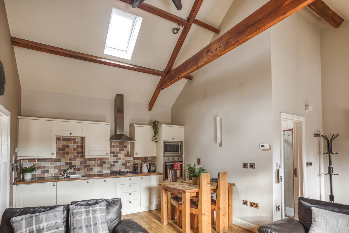 Dieses komfortable Studio mit herrlicher Aussicht, viel Platz im Freien, Spaziergängen von der Haustür und Pubs mit gutem Essen in der Nähe ist perfekt für Paare, die ihre Batterien in einer ländlichen Umgebung wieder aufladen möchten. Es verfügt über eine gut ausgestattete Küche mit Geschirrspüler, Bettwäsche von White Company, Fußbodenheizung mit unabhängiger Steuerung, einen eigenen Kombi-Bolier für heißes Wasser, TV und WLAN. Es liegt am Rande des Peak District mit vielen lokalen Sehenswürdigkeiten, wie Chatsworth und Hardwick Hall.
