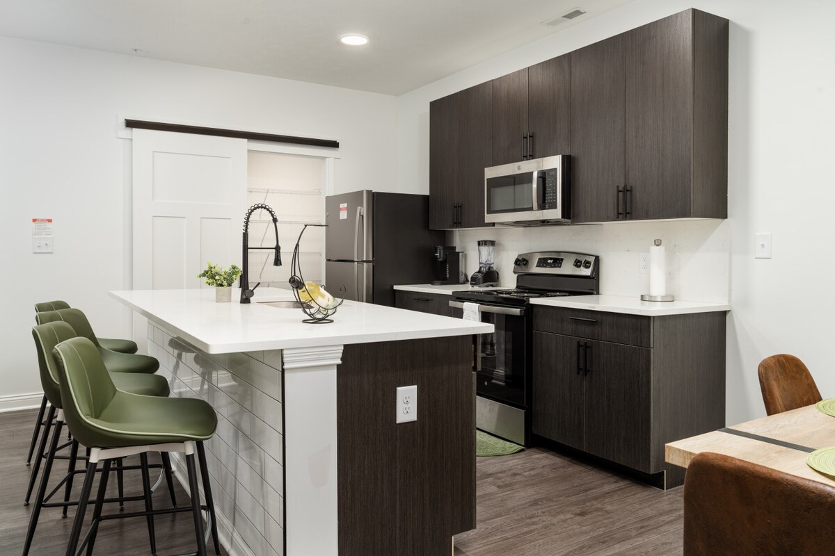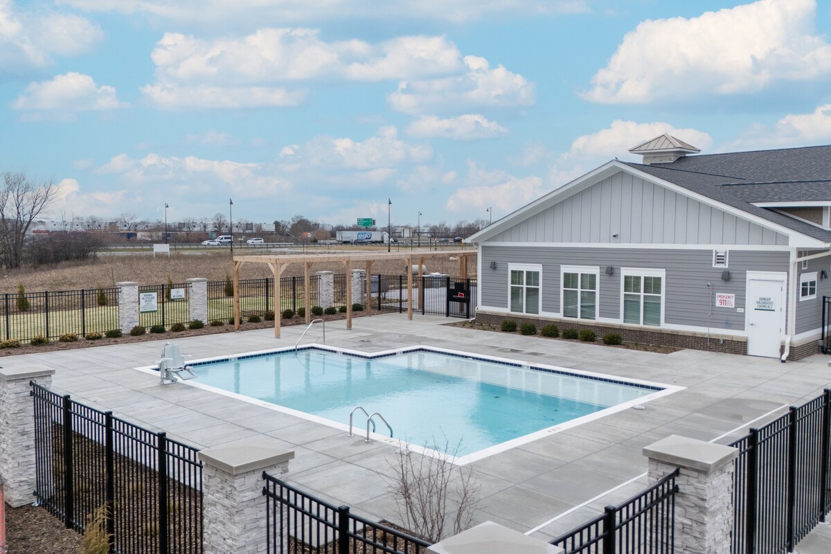 Willkommen in deinem modernen Rückzugsort in Whitestown, Indiana!Dieses brandneue Apartment mit 2 Betten und 2 Badezimmern bietet einen luxuriösen und dennoch komfortablen Aufenthalt für bis zu 5 Gäste. Durchdacht mit stilvollen Oberflächen, geräumigen Zimmern und erstklassigen Annehmlichkeiten ist es ideal für Familien, Geschäftsreisende oder Paare, die einen erholsamen Kurzurlaub suchen. Jedes Schlafzimmer ist mit üppigen Queensize-Betten und einem Zustellbett ausgestattet und sorgt für zusätzliche Flexibilität für größere Gruppen. Die Wohnung verfügt auch über einen speziellen Arbeitsplatz für mobiles Arbeiten.