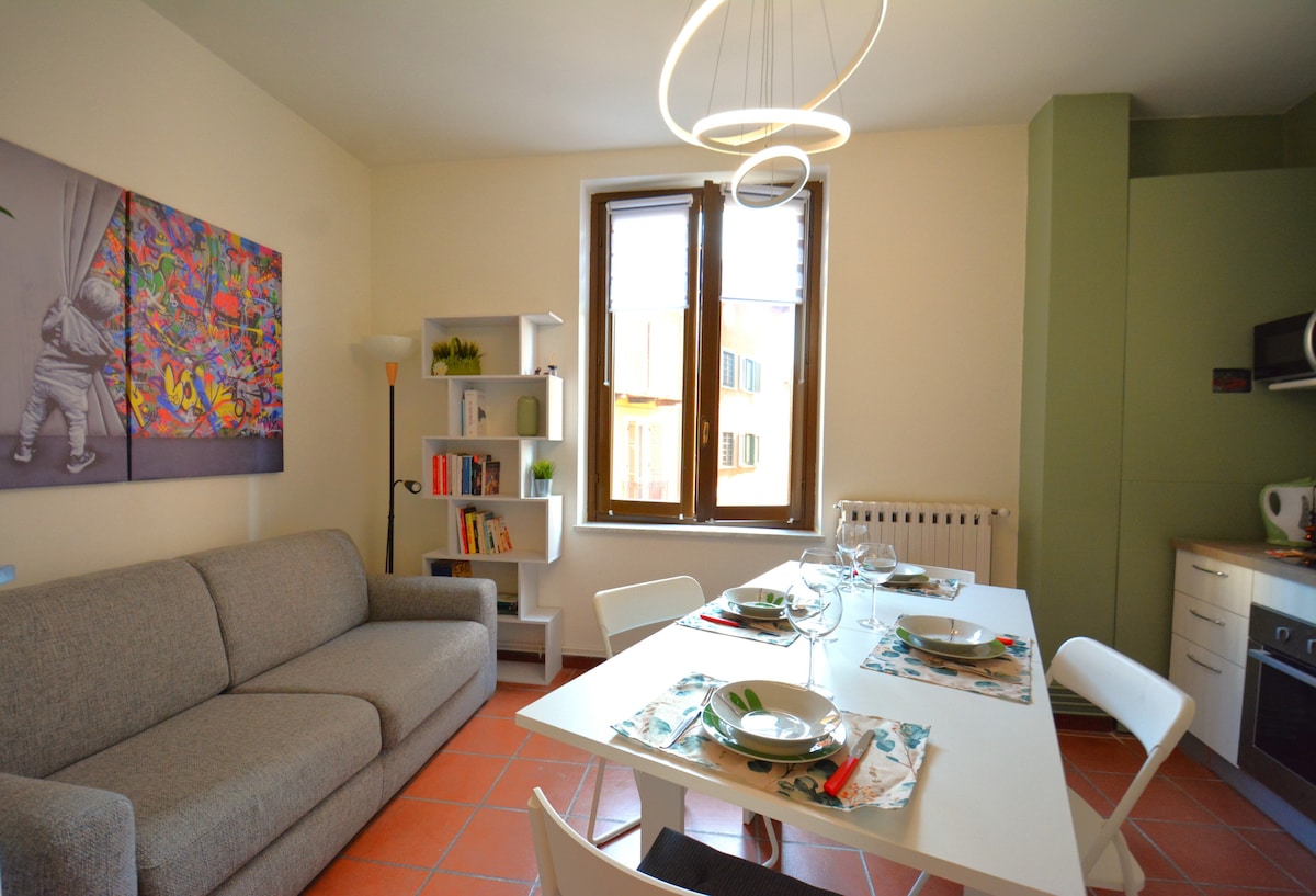 Im historischen Zentrum der Stadt Giaveno in der Fußgängerzone. Kleines Haus im ersten Stock mit eigenem Zugang. Sehr hell, mit Fenster und Balkon. Bett 140x200cm und Schlafsessel 80x190cm. Küche mit Herd, Mikrowelle, Kühlschrank/Gefrierschrank; ausgestattet und bereit für den täglichen Gebrauch. Badezimmer mit Dusche, Waschmaschine und Wäscheständer. Thermoautonom. Dediziertes TV und WLAN Auf Wunsch Babybett und Hochstuhl. Haustiere nur nach Absprache vor der Buchung erlaubt. CIR 00111500010