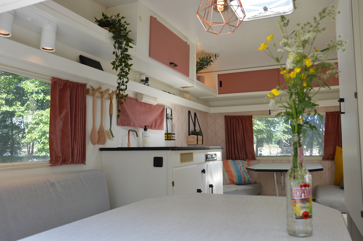 Gepimpte caravan eigen sanitair, tentplek mogelijk