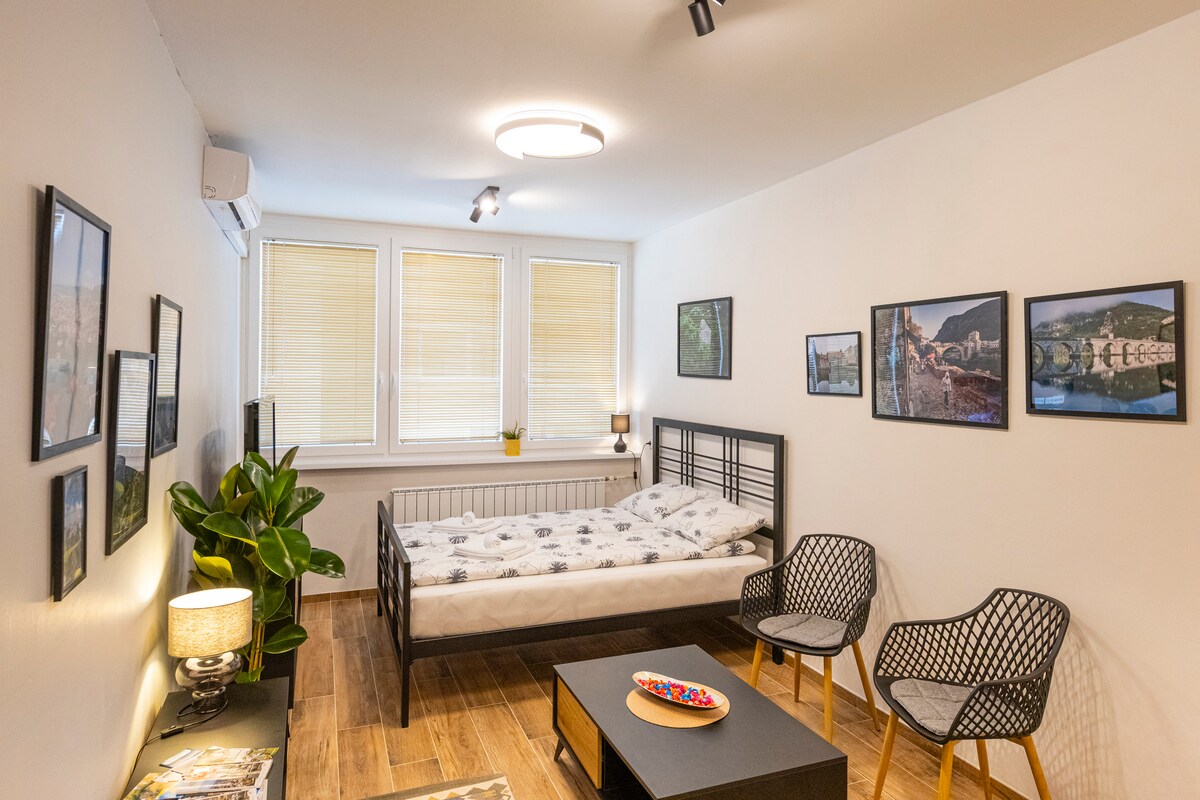 Willkommen im Velvet Studio Apartment, deinem perfekten Rückzugsort in Sarajevo! Dieses moderne, voll ausgestattete Studio ist für einen komfortablen und stilvollen Aufenthalt konzipiert. Im pulsierenden Viertel Hrasno gelegen, bietet es eine hervorragende Anbindung an die historische Altstadt der Stadt. Nach dem Feedback der Gäste haben wir eine brandneue, ruhige Klimaanlage mit Kühlung und Heizung hinzugefügt, um das ganze Jahr über Komfort zu gewährleisten. Das Velvet Studio Apartment ist warm eingerichtet, damit du dich wie zuhause fühlst. Wir freuen uns darauf, dich bei uns zu begrüßen!