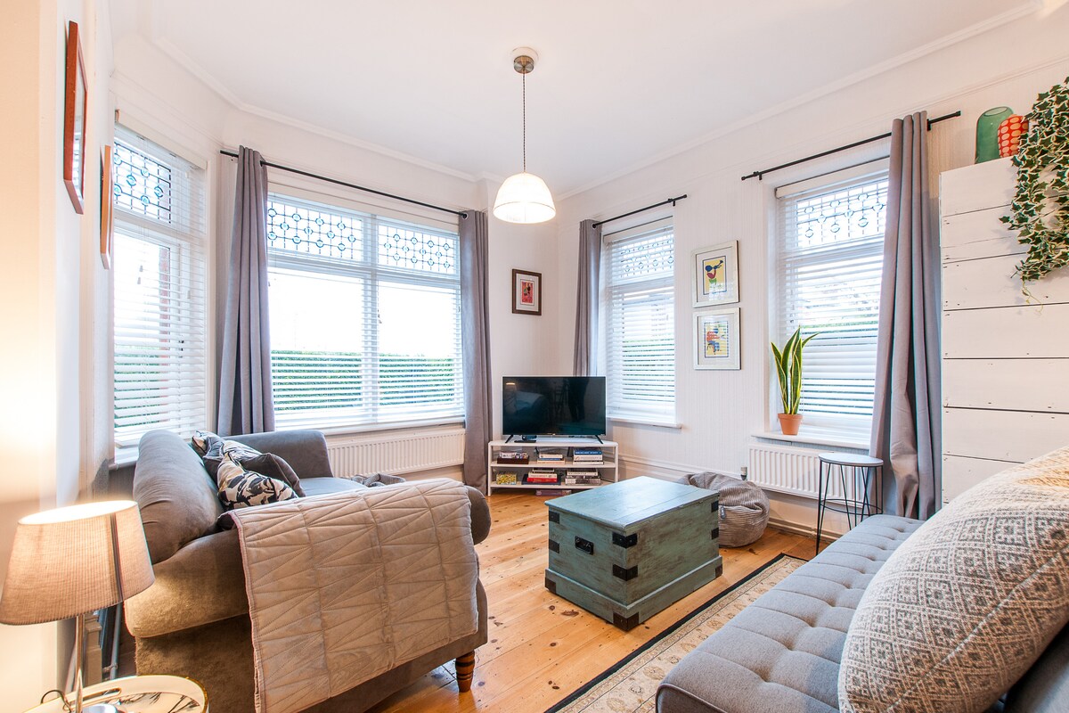 Victorian apartment with a beautiful sea view towards the famed Turner Contemporary. Look out to sea through the porthole window as you start the day with a coffee from the Nespresso machine. Then head out on a short walk round the bay into the vibrant Old Town to explore the antique shops, galleries and cafés. Invite friends over for dinner to watch the sun go down and end the day with a relaxing soak in the bath before climbing into bed to sleep on crisp white sheets.