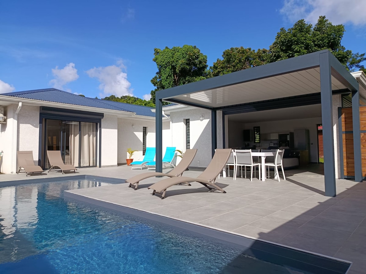 Die Villa Vanille, eine Architektenvilla aus dem Jahr 2024, bietet Ihnen mit ihrer gepflegten Dekoration und Ausstattung 4-Sterne-Status und Komfort. Dieses sehr schöne Anwesen in einem Wohngebiet wird Sie mit diesem Blick auf das Karibische Meer und die Inseln des Cousteau-Reservats sowie seine Sonnenschlaf und seinen schönen Infinity-Pool verführen.