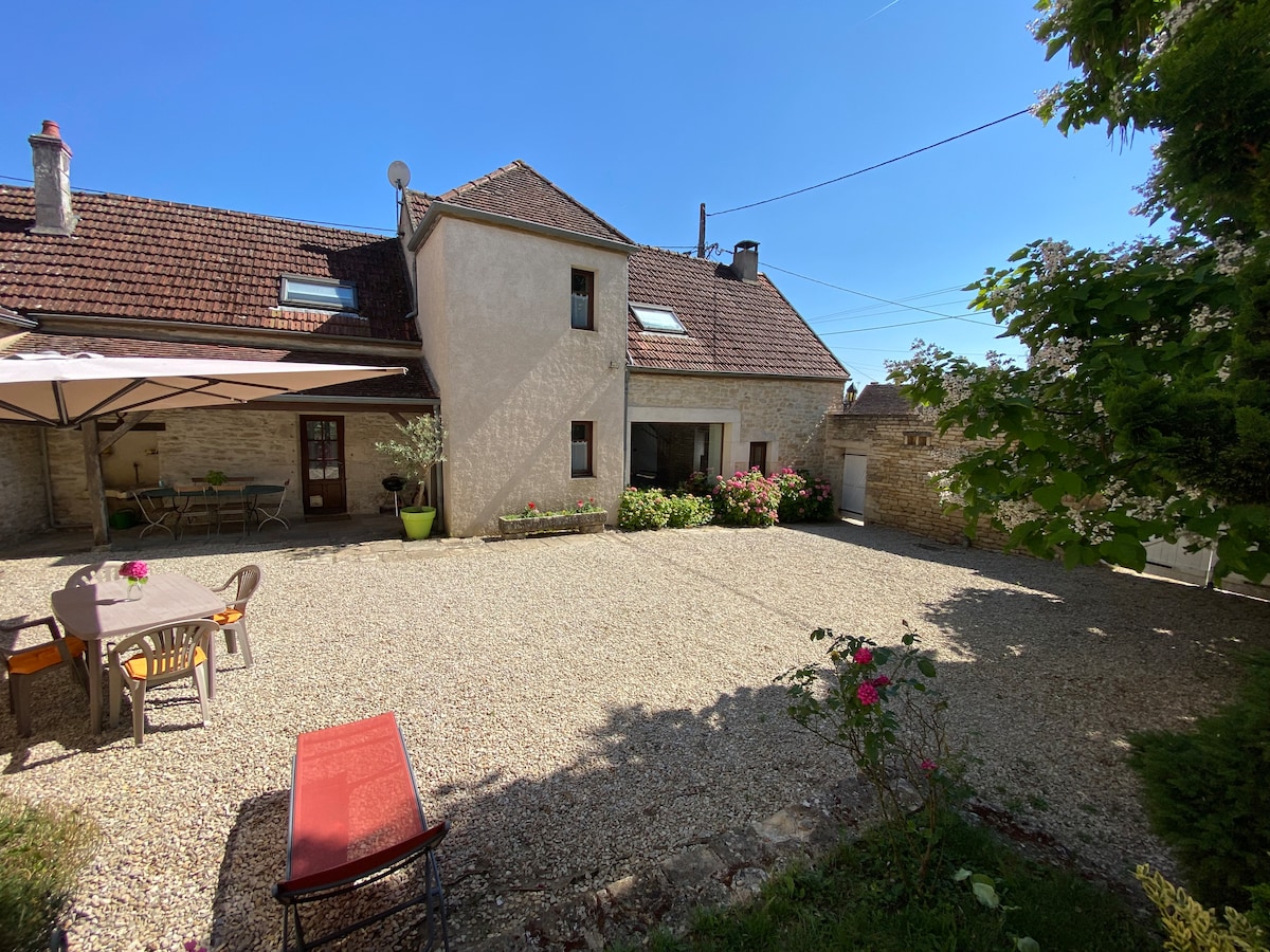 Entfliehe der verrückten Welt und bleibe in diesem Steinhaus in einem ruhigen burgundischen Dorf im Herzen der Auxois-Landschaft. Rollende grüne Hügel, alte Wanderwege, frische Landluft, Vogelgesang und Sternennächte erwarten dich. Vielleicht verbringst du die meiste Zeit in dieser Oase der Ruhe und des Friedens und wanderst etwas weiter als den umzäunten Garten. Alternativ kannst du UNESCO-Stätten, Bergdörfer, mittelalterliche Städte und die Seen und Wanderwege des Morvan-Parks entdecken.