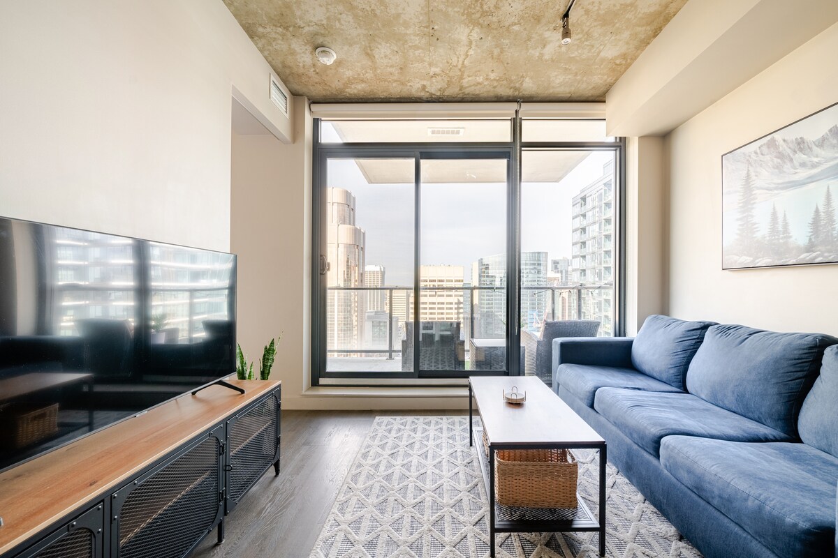 Willkommen in unserer hellen und geräumigen Eigentumswohnung mit 2 Schlafzimmern und 2 Badezimmern im Calgary Beltline District. Unsere moderne Unterkunft ist perfekt für Familien oder kleine Gruppen und verfügt über gemütliche Schlafzimmer mit weicher Bettwäsche, eine voll ausgestattete Küche und einen geräumigen Wohnbereich mit herrlichem Blick auf die Stadt. Genieße den Komfort einer eigenen Waschküche, Highspeed-WLAN, eines Erdgasgrills und kostenloser Innenparkplätze. Mit trendigen Cafés, Restaurants und Sehenswürdigkeiten nur wenige Schritte entfernt, ist unsere Wohnung der perfekte Ausgangspunkt, um Calgary zu erkunden.