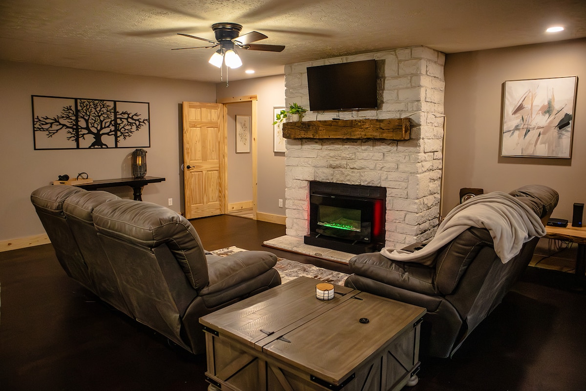 Inspired by mid-century modern design, The Ledge features expansive floor-to-ceiling windows and outdoor seating areas designed to showcase the surrounding cavern and seasonal waterfalls. Nestled along a secluded, forested drive on 24 private acres, every detail has been thoughtfully curated for your comfort. The Ledge offers WiFi, a hot tub, indoor and outdoor fireplaces—creating the perfect balance of luxury and nature. Secluded, yet conveniently located for all your Hocking Hills adventures!