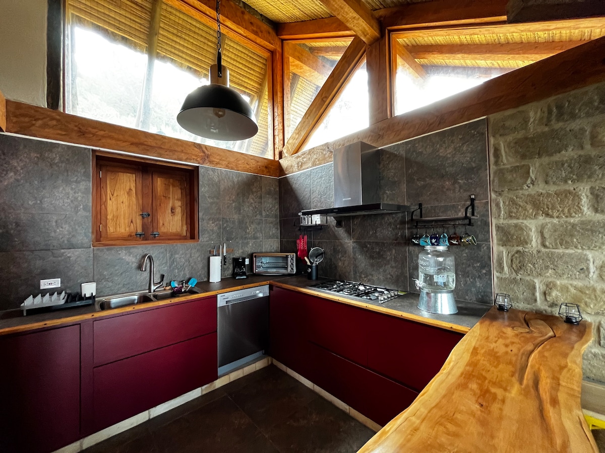 Genießen Sie die bezaubernde Umgebung inmitten der Natur, wo Sie dem Gesang der Vögel lauschen und einen herrlichen Blick auf die Berge und die Felder der Region haben. In einer gemütlichen Hütte vom Typ Chalet, komplett aus Kiefernholz, die über ein Schlafzimmer und ein Zwischengeschoss mit jeweils einem Doppelbett verfügt. Nur 4 Minuten mit dem Auto oder 20 Minuten zu Fuß vom Hauptpark von Jenesano entfernt, wo Sie typische Restaurants und Bars finden.