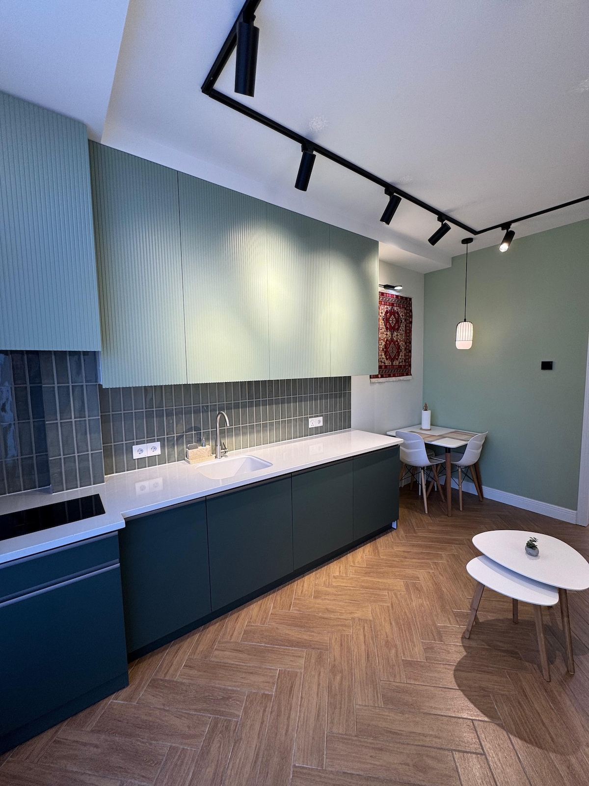Whether you're traveling for work or as a tourist: this place has you covered. Our newly-renovated apartment was designed with comfort and practicality in mind. Soundproof walls will allow you to get a good night's rest. Heated floors will keep you warm in winter and the ACs will cool you down when it's hot outside. Those who like cooking will surely enjoy our spacious kitchen. There's a comfortable office chair and a desk for people that need to work from home. Looking forward to welcoming you!