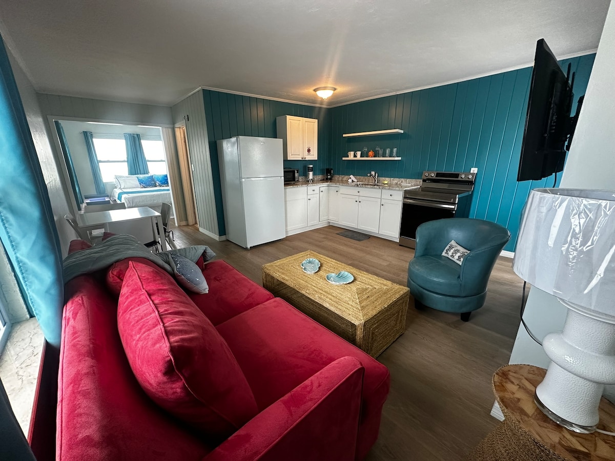 Nur wenige Schritte vom Strandzugang entfernt! Willkommen im „Pirates Den“ im Gulf Drive Inn – einer geräumigen Suite mit 1 Schlafzimmer/1 Badezimmer mit einem Schlafsofa, einer voll ausgestatteten Küche und einem Wohnbereich. Dieser Duplex-Bungalow verfügt über resortähnliche Annehmlichkeiten mit einem gemeinsamen Hinterhofbereich, einschließlich eines beheizten Salzwasserpools, Spa und Gasgrills. Egal, ob Sie einen Geburtstag, ein Jubiläum oder einfach nur einen längeren Aufenthalt am Strand feiern möchten, das Gulf Drive Inn bietet alles!.Bitte erkundige dich, um mehr als eine Suite für größere Gruppen zu reservieren!