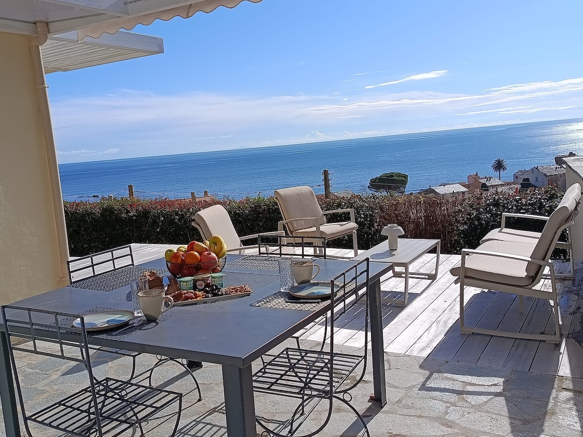 CASA DI L'ORIZZONTI: Entdecken Sie den Charme des Cap Corse durch unser modernes Haus, das die Authentizität des Ortes bewahrt hat. Am Rande der Küste gelegen, profitiert es von der charakteristischen Meeresbrise des Cap Corse. In einer intimen Atmosphäre dank seiner Bäume können Sie sich sonnen und sich im traditionellen korsischen Becken mit einem Garten von 350 m2 abkühlen. Sie genießen einen herrlichen Panoramablick auf das Meer. Zugang zum Meer in 3 Minuten zu Fuß.