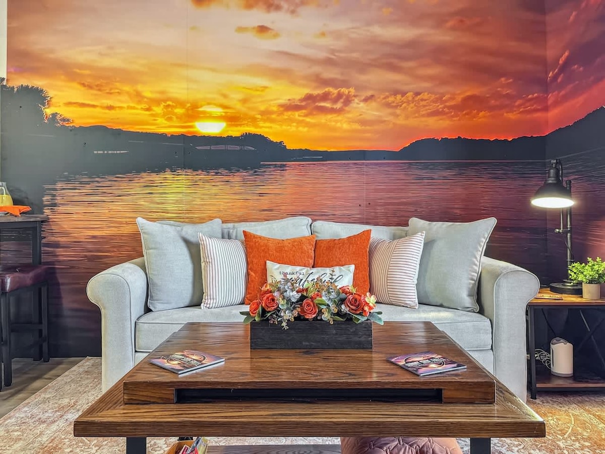 Brandneue moderne 2-Zimmer-Eigentumswohnung mit stilvollem Komfort und atemberaubendem Blick auf den Lake Taneycomo im dritten Stock. Wache mit atemberaubenden Sonnenaufgängen über dem Wasser auf und genieße einen ruhigen Rückzugsort mit viel Platz zum Entspannen. In ruhiger Lage, aber nur wenige Minuten von Bransons Top-Attraktionen, Theatern, Restaurants und Einkaufsmöglichkeiten entfernt. Perfekt für Familien, Paare oder Angler und auch hundefreundlich – bringen Sie also Ihre pelzigen Freunde mit für den ultimativen Branson-See-Urlaub.