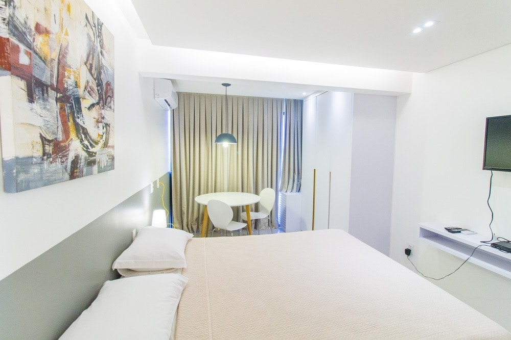 Dieser einzigartige Ort hat seinen eigenen Stil. Minas-Gerais-Stil, inspiriert vom Gründer der Stadt, Juscelino Kubitschek. Gemütlich, eigen, breite Arbeitsplatte für Mahlzeiten und dergleichen, Klimaanlage, Mikrowelle, elektrischer Ofen, Kaffeemaschine, Kühlschrank, Balkon mit freiem Blick, großes Badezimmer, Sofa, Schränke, TV, WLAN ..... alles, was Sie von einer Unterkunft erwarten. Sie werden sich sicher wie zu Hause fühlen!!! Verlassen Sie das Traditionelle !!! Wir erwarten Sie !!! Liebe Grüße !!!