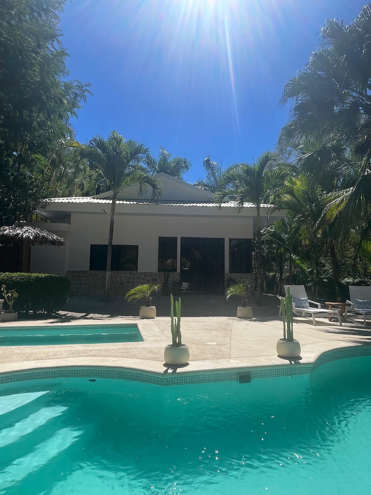 The peacefulness of this place is the best you can have. It makes the travel definitely worth it. The wild life of monkeys and eagles flying make the landscape picture. In the heart of Costa Rica’s nature with only 10min from the tamarindo beach, 15min from avellanas ,Conchal beaches and 2 golfs (18 holes) located on the Pacific north coast . This fully furnished house for 5 peoples max daily cleaning,laundry service included,and pool caretaking. All in a private and secure area 24h/24